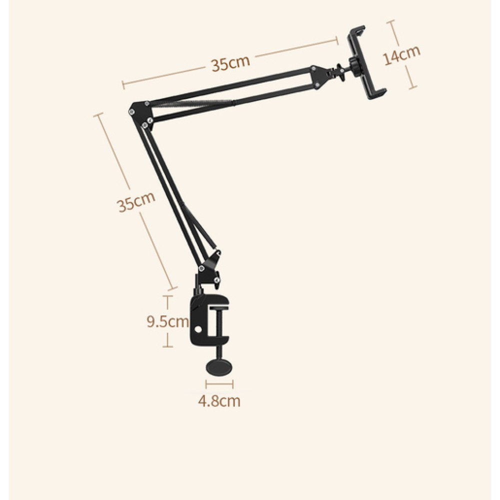 Регулируемый на 360 градусов держатель премиум-класса позволяет удобно просматривать устройства на идеальном расстоянии и под идеальным углом, когда вы лежите, едите, читаете, готовите, печатаете, пишете, смотрите фильмы или играете в игры. Он может прочно закрепиться на стул, настенный шкаф, стол и изголовье кровати толщиной 1-2 дюйма.