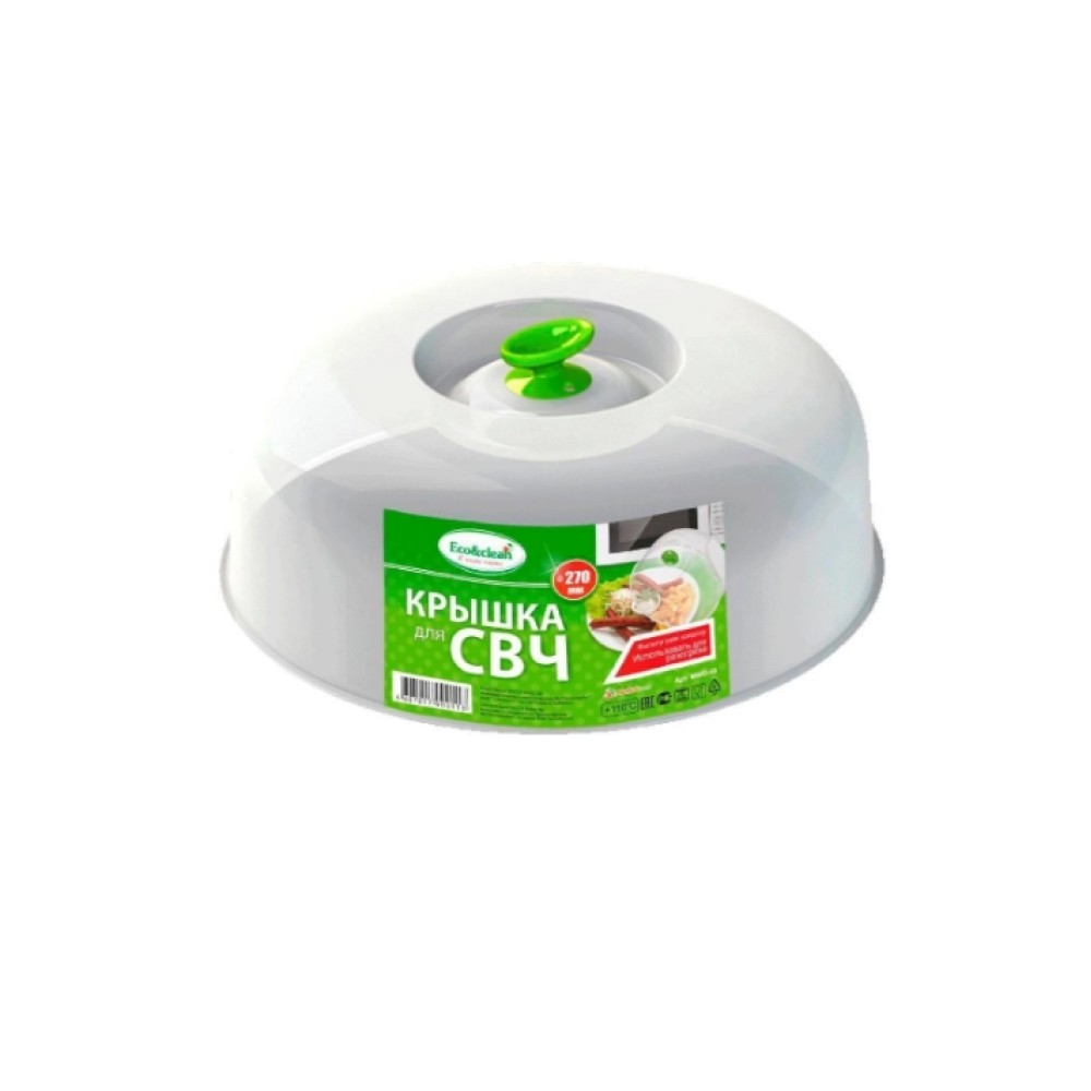 Тип - крышка, Мытьё в посудомоечной машине, Цвет корпуса - прозрачный, Материал корпуса - полипропилен, Высота - 9 см, Ширина - 27 см, Глубина - 27 см, Вес - 110 г, Бренд - Eco&clean, Наименование модели - MWO-49, Страна производства - Китай, Диаметр 27 см.