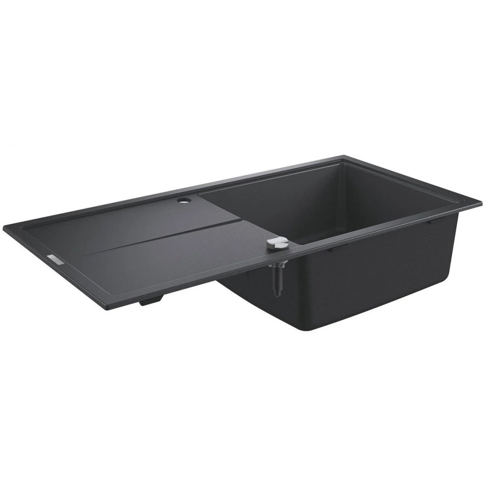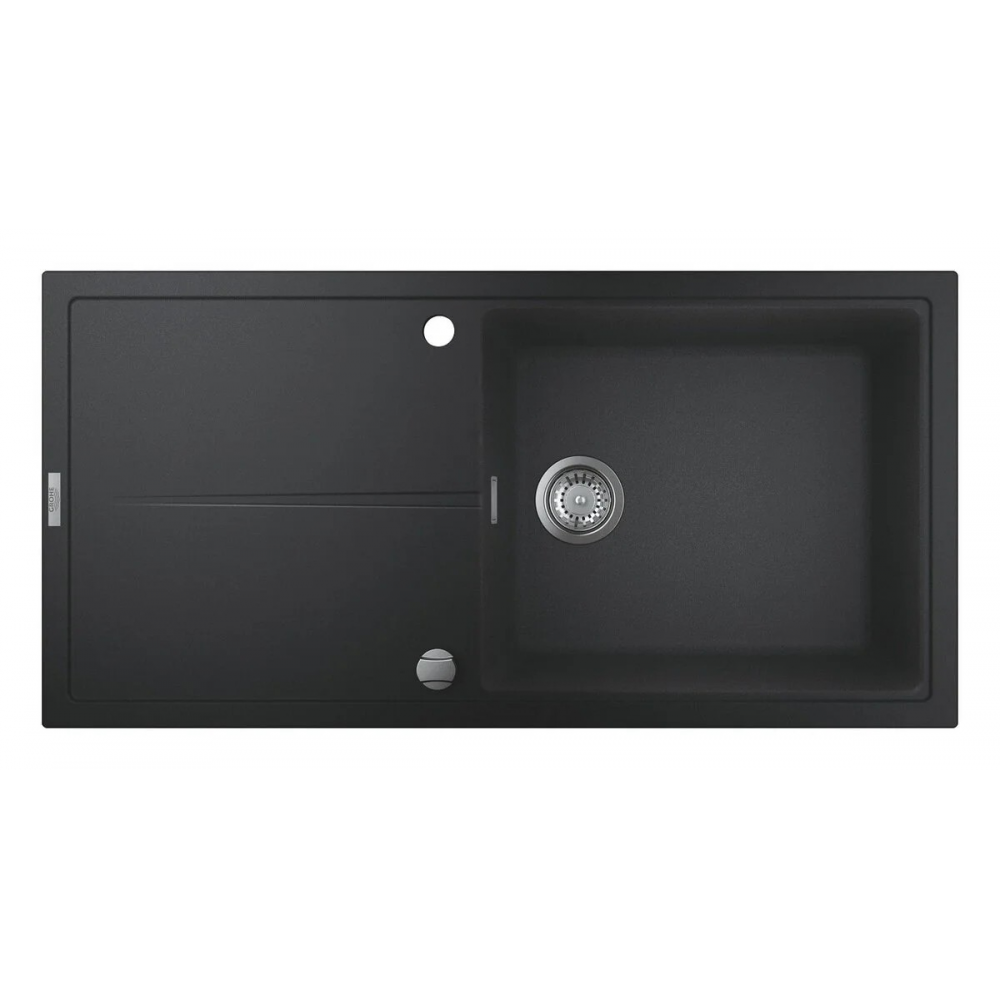 Мойка кухонная из искусственного гранита Grohe K400, 31641AP0, 100 x 50 см, с корзинчатым фильтром и донным клапаном, черный гранит