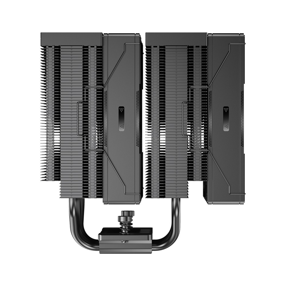 PCCooler RZ620 BK – это мощный процессорный кулер со своей собственной эстетикой охлаждения. Даже в его лаконичном дизайне можно найти нотки премиума и желание стильно выделиться из многочисленной «серой» массы процессорных кулеров. Радиатор собран из большого количества пластин увеличенного размера, что приводит к рекордной для 120-мм кулера площади. Также он покрыт специальной краской, наделён оптимизациями торцов пластин, и в нём грамотно разведены тепловые трубки.