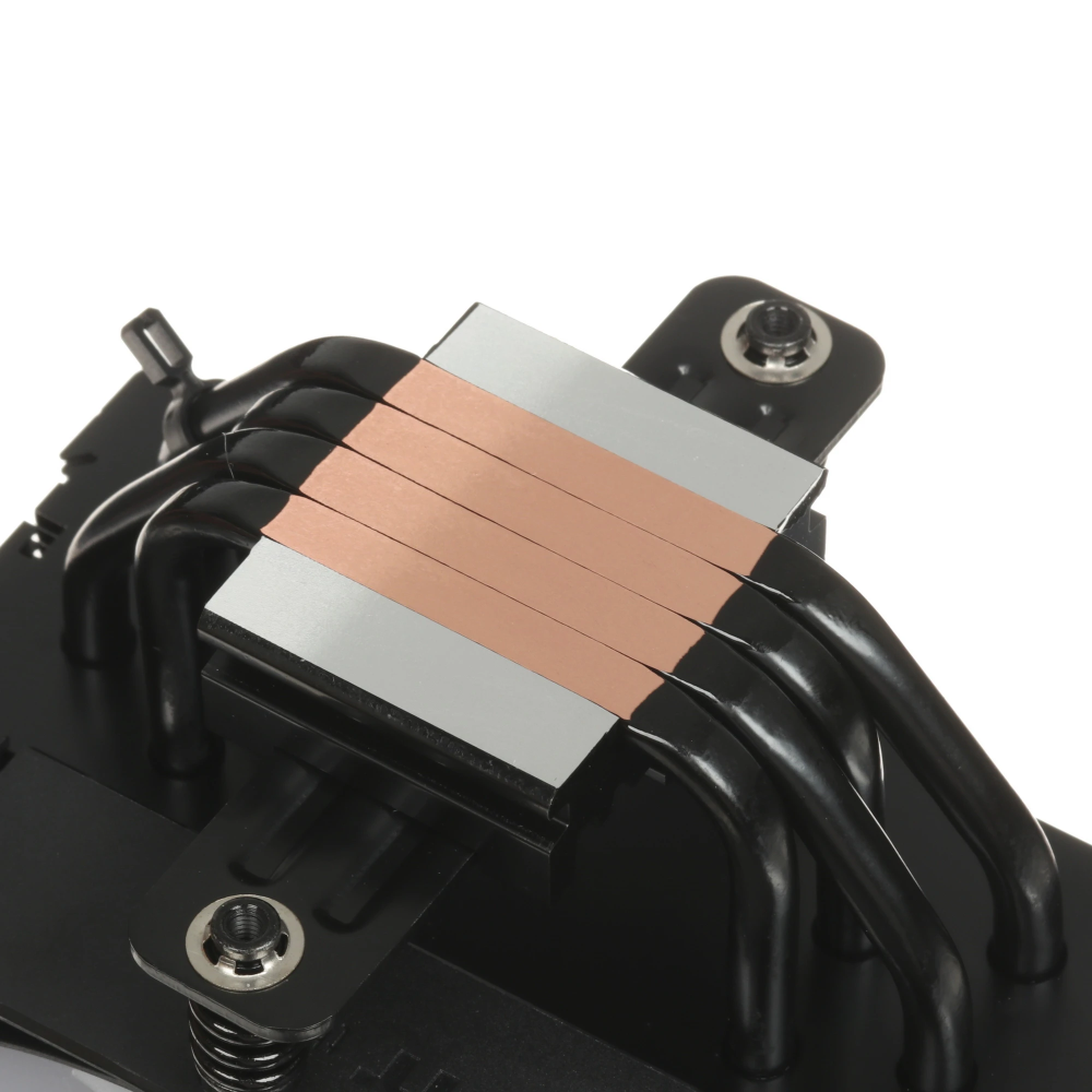 Кулер Thermaltake ASTRIA 200 оснащён четырьмя U-образными медными тепловыми трубками Ø6 мм, что обеспечивает быстрое рассеивание тепла. Благодаря мощному вентилятору и уникальной ARGB-подсветке, он отлично подходит для игровых и рабочих сборок.