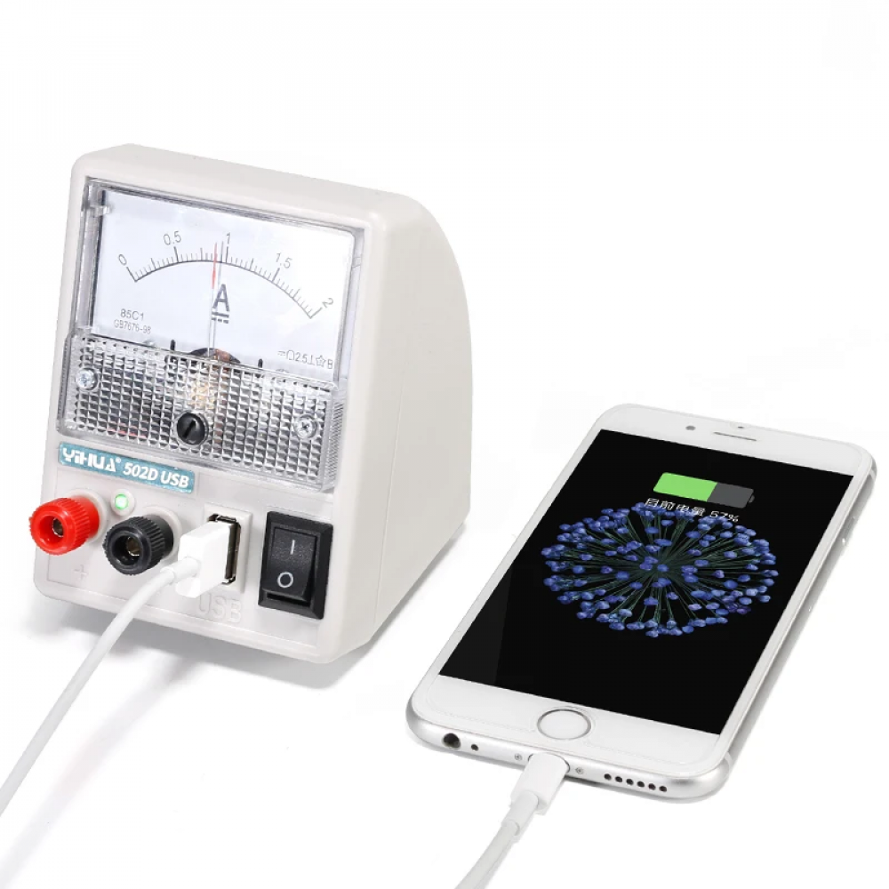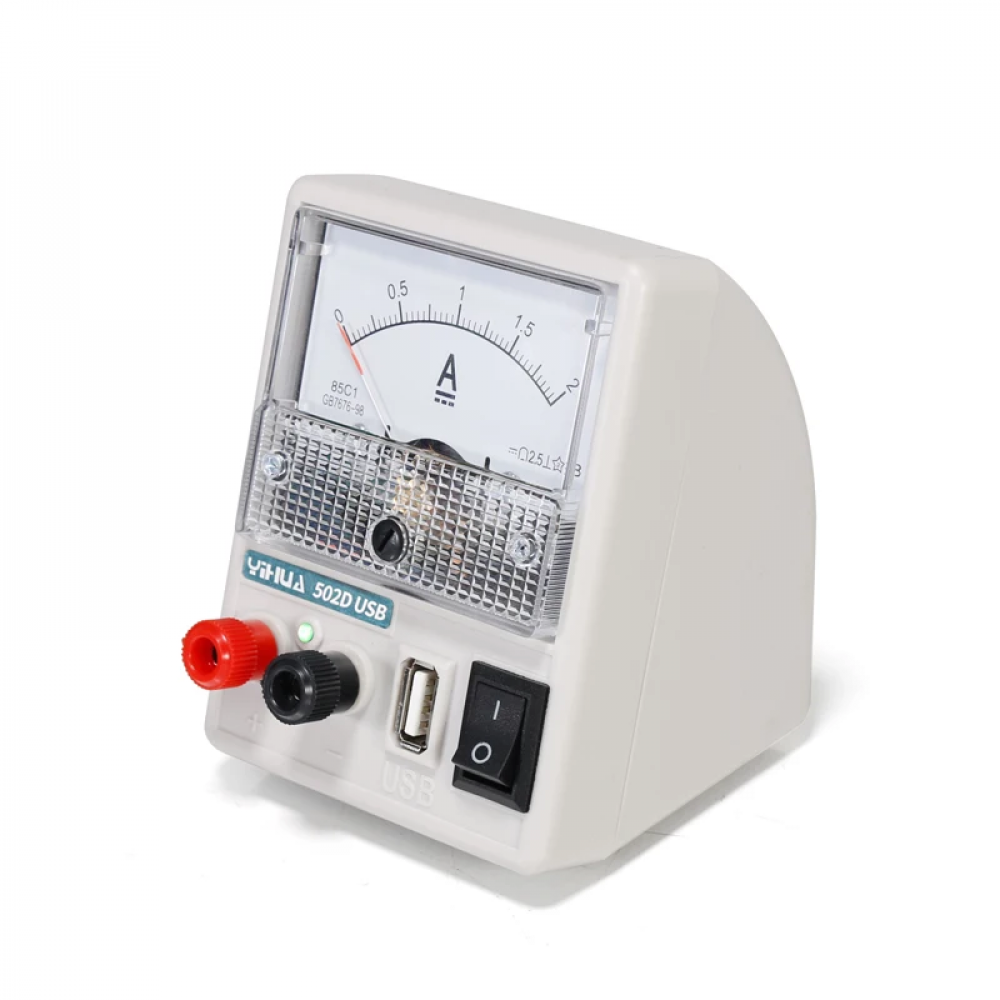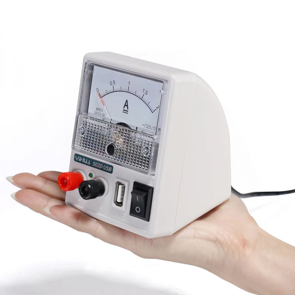 YIHUA 502D — это компактный лабораторный блок питания на 5 В, предназначенный для демонстрационного и учебного использования. Белый корпус, стабильный выходной ток до 2 А, подходит для питания микросхем, Arduino, сенсоров и других низковольтных устройств. Идеален для школьных и вузовских лабораторий, а также для тестирования в сервисных центрах.