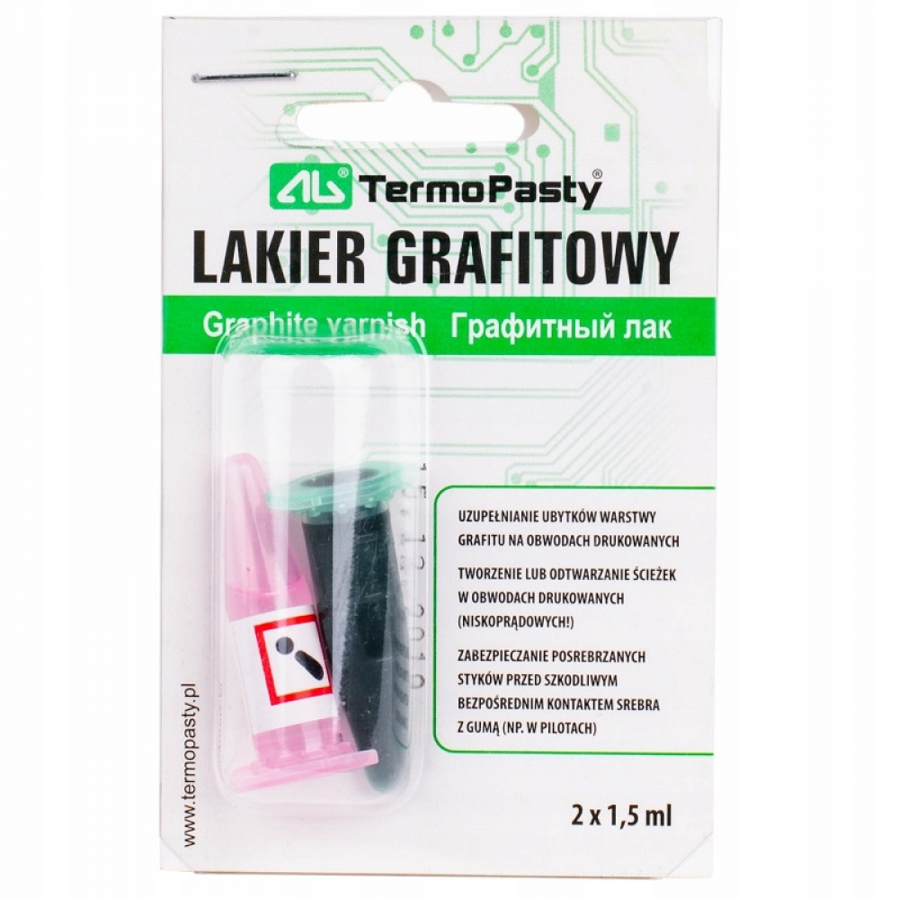 AGT-022 — это графитный лак от TermoPasty, предназначенный для восстановления повреждённых участков графитного слоя на печатных платах и токоведущих дорожках. Имеет высокую электропроводность, легко наносится и быстро сохнет. Поставляется в виде двух ампул по 1,5 мл, подходит для точечного ремонта и сервисного применения.