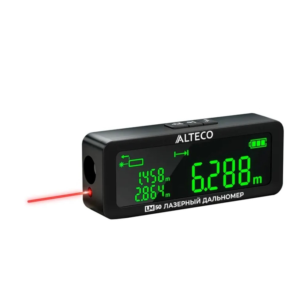 Лазерный дальномер ALTECO LM 50 - имеет дальность измерения до 50 метров. Прибор имеет эргономичный корпус, который удобно держать в руках. Цвет лазера красный, поэтому его с легкостью можно использовать на улице. Преимуществом данной модели являются различные функций измерения.