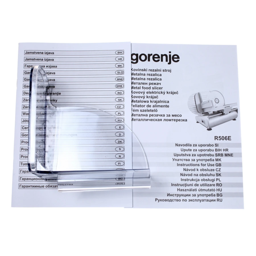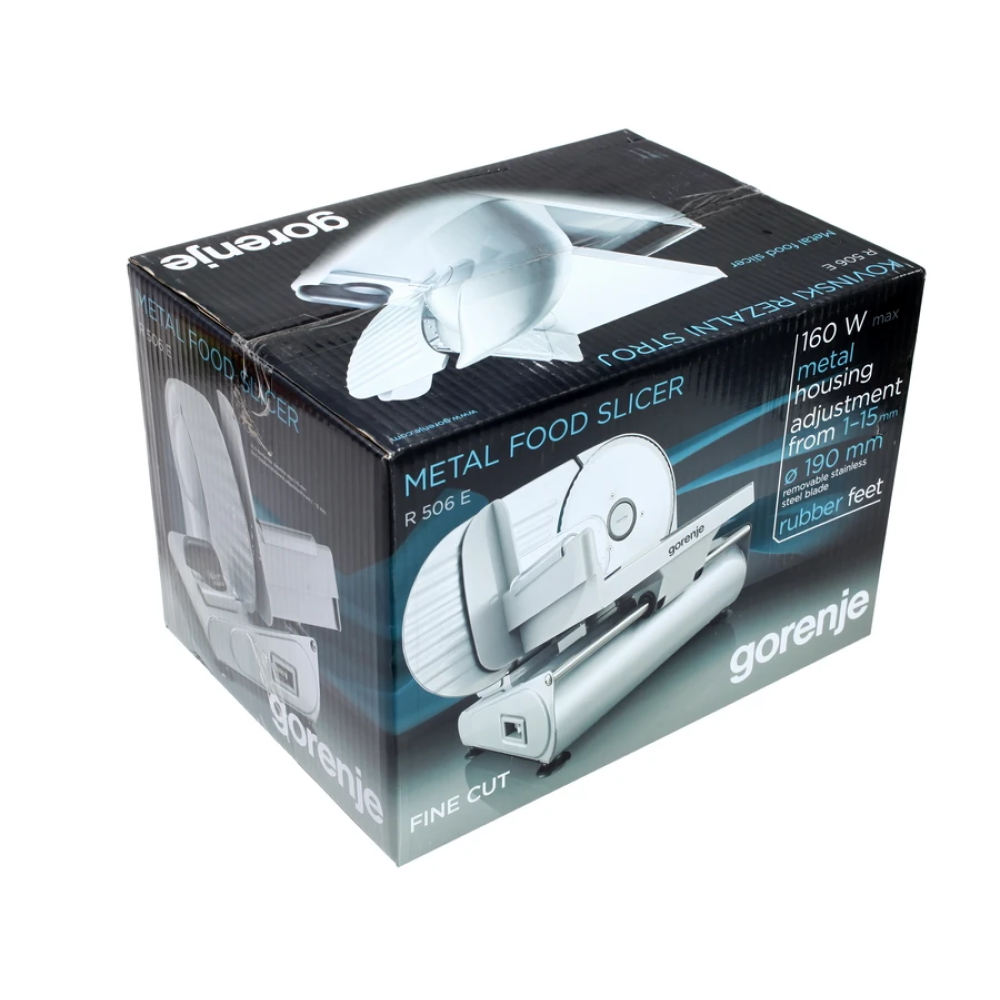 Лезвия из нержавеющей стали, прочный и стильный корпус, полное соответствие современным техническим стандартам – все это ломтерезка Gorenje R506E.