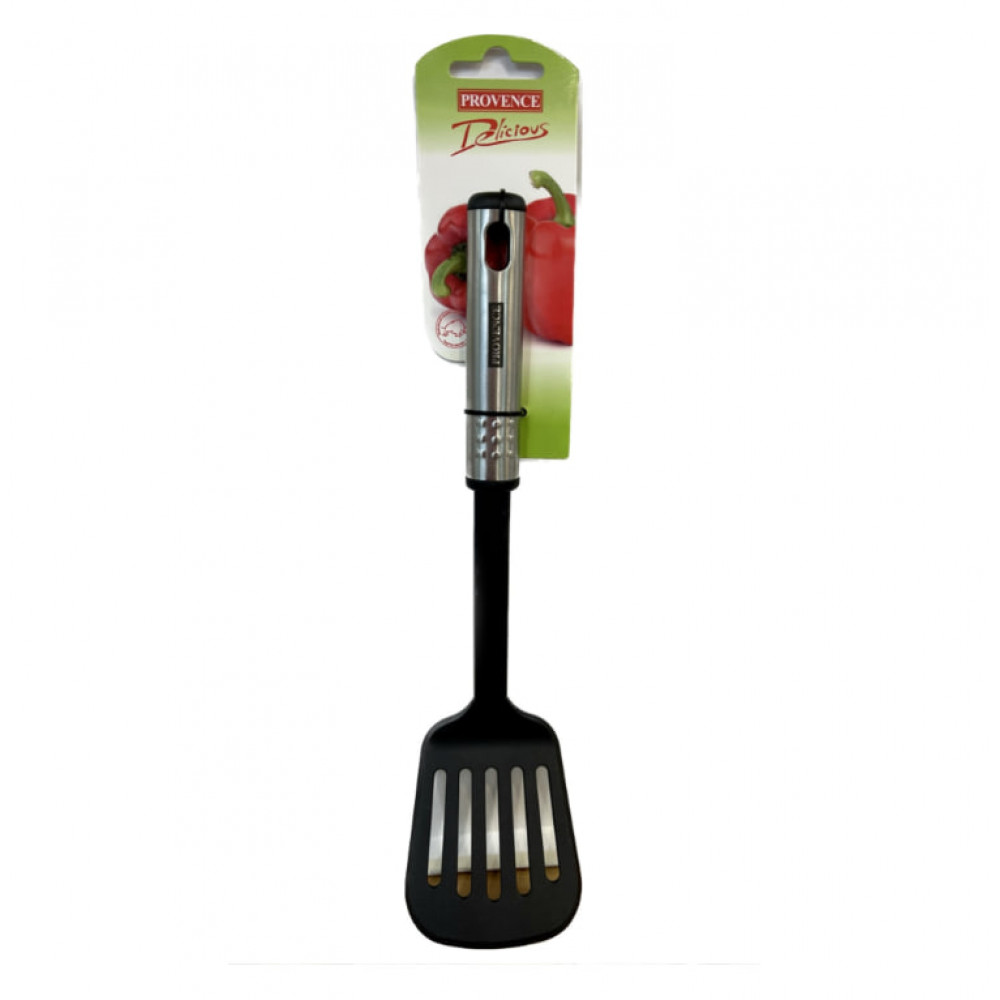 Лопатка 261586 "Прованс" с отверстиями, изготовленная из пищевого нейлона, представляет собой практичный и эстетичный кухонный инструмент. Её длинная рабочая часть с отверстиями позволяет сливать лишнюю жидкость при подаче блюд, таких как варёные овощи, рыба, котлеты и др. Благодаря увеличенной ширине (~8–9 см) и термостойкости до 200 °C, лопатка защищает антипригарные покрытия и сохраняет форму при нагреве.