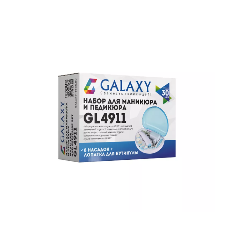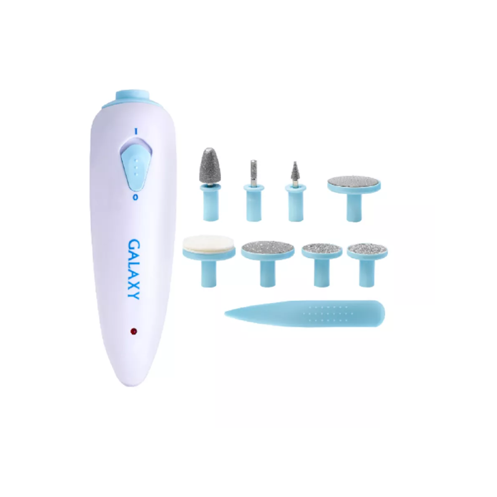 Galaxy GL 4911 — компактный электрический набор для маникюра и педикюра с 7 сменными насадками. Подходит для обработки ногтей, кутикулы, полировки и шлифовки. Работает от сети, имеет 2 скорости, эргономичный корпус и футляр для хранения. Идеален для домашнего ухода.