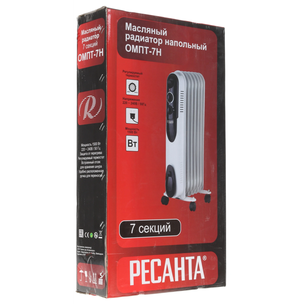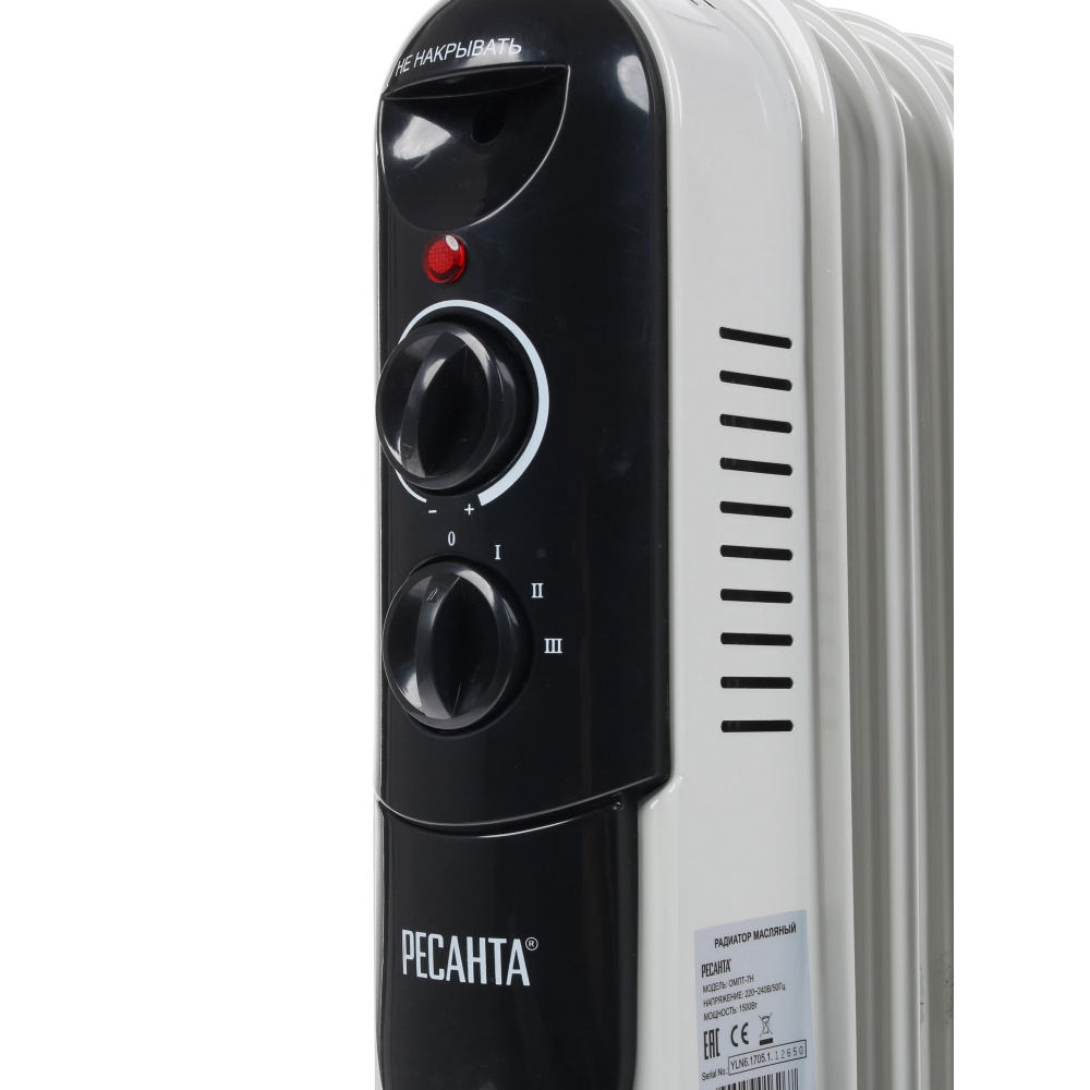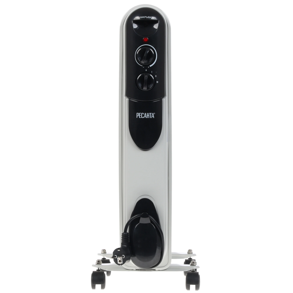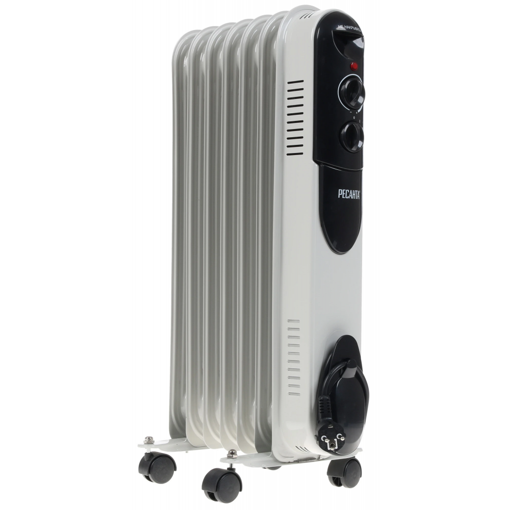 К дополнительным достоинствам радиатора Ресанта ОМПТ-7Н необходимо отнести опцию защиты от перегрева и световой индикатор работы. Вес масляного радиатора в 8 кг сочетается с его размерами 65x37x14 см.