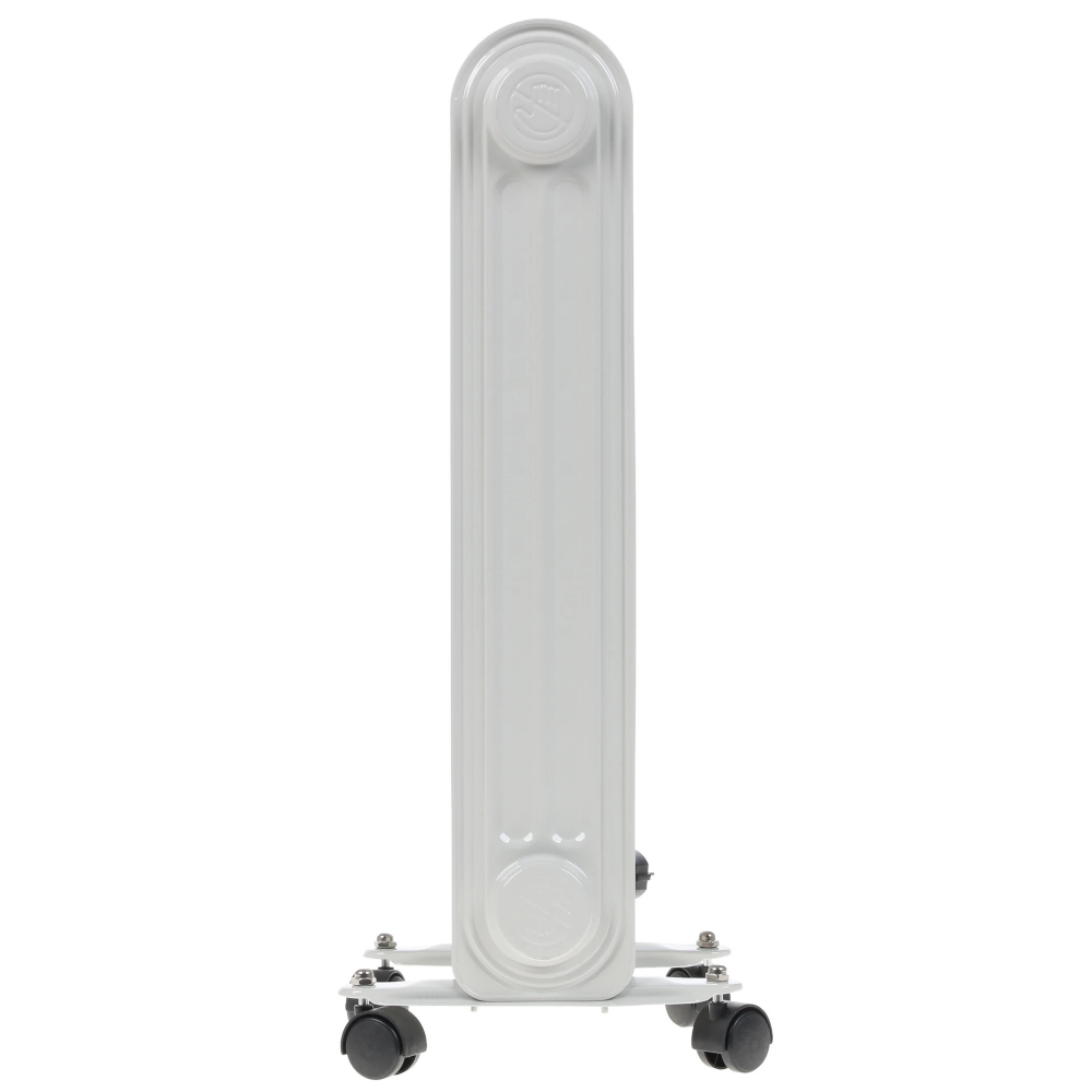 Масляный радиатор Ресанта ОМПТ-7Н белого цвета обладает мощностью 1500 Вт и подходит для использования на территории площадью до 15 кв. метров. Это соответствует размеру стандартной комнаты в квартире или кабинету офиса. Радиатор состоит из 7 секций. Модель имеет регулируемый термостат и позволяет управлять мощностью нагрева. Радиатор предназначен для напольной установки, а для удобства перемещения он получил от производителей колесики и ручку для переноски. Модель также имеет отсек для сетевого шнура, что упрощает условия ее хранения.