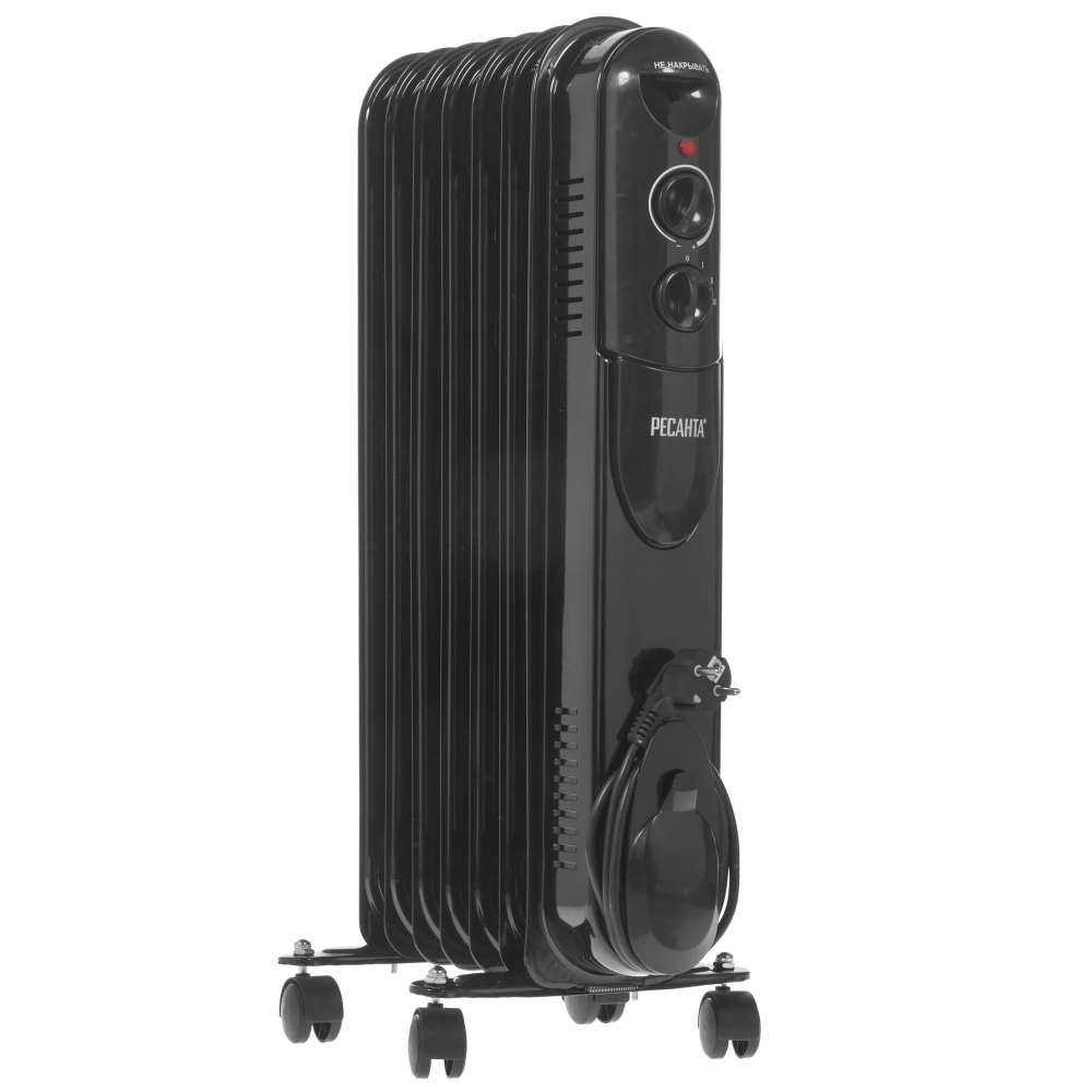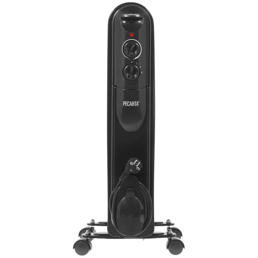 Радиатор Ресанта ОМПТ-7НЧ работает от стандартной сети, а на период хранения позволяет скрутить шнур в боковой встроенный отсек. Благодаря привычному дизайну и черной расцветке обогреватель стильно впишется в любой интерьер. А небольшие размеры позволят хранить прибор за шкафом или в небольшом чулане.
