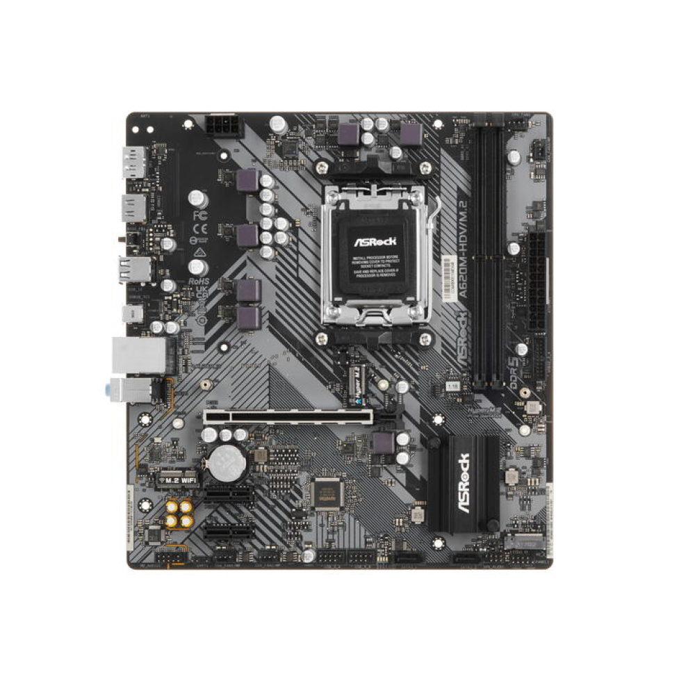 Материнская плата ASRock A620M-HDV/M.2 – основа для сборки высокопроизводительного компьютера. Она ориентирована на решение повседневных задач в домашних и офисных ПК: поиск информации в Интернете, просмотр мультимедийного контента, редактирование документов. Плата выполнена в компактном форм-факторе Micro-ATX, поэтому подходит для установки в ограниченном пространстве.