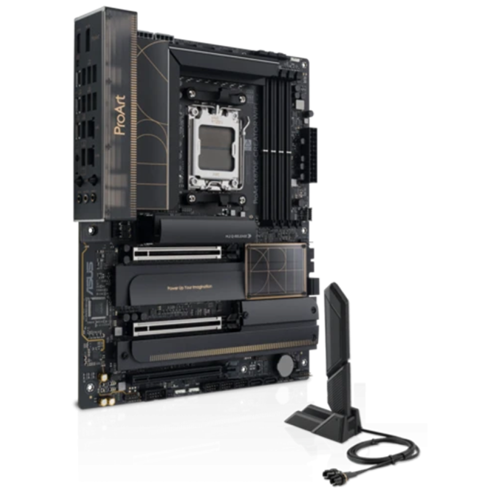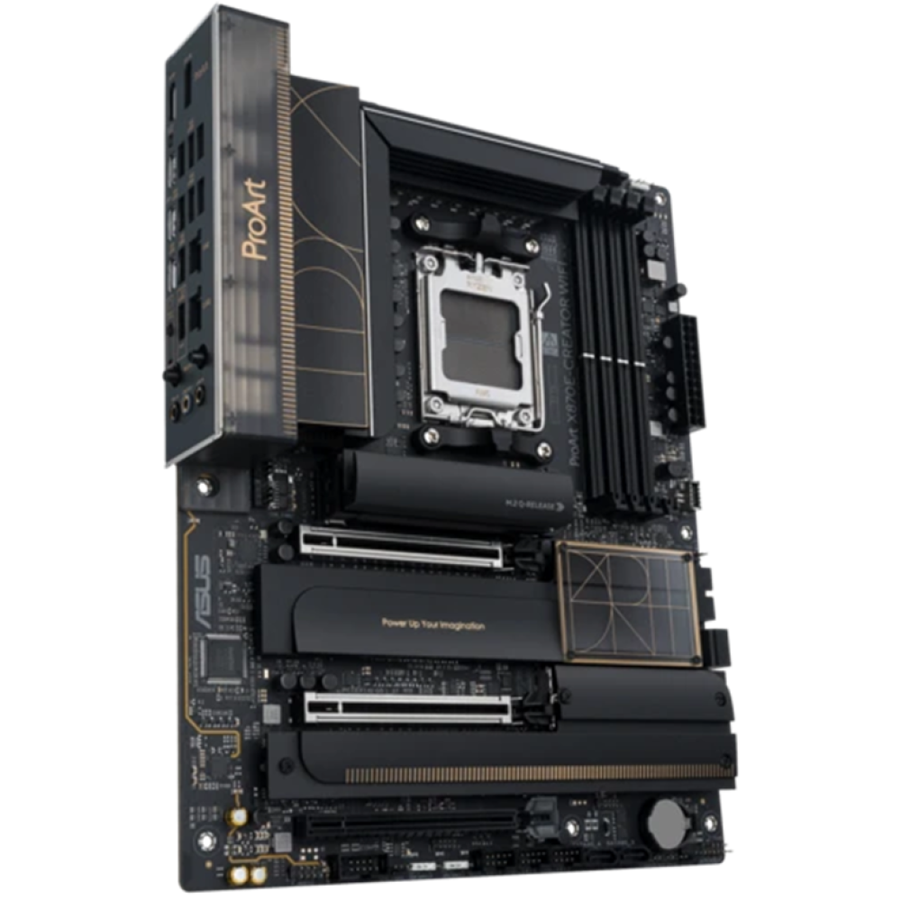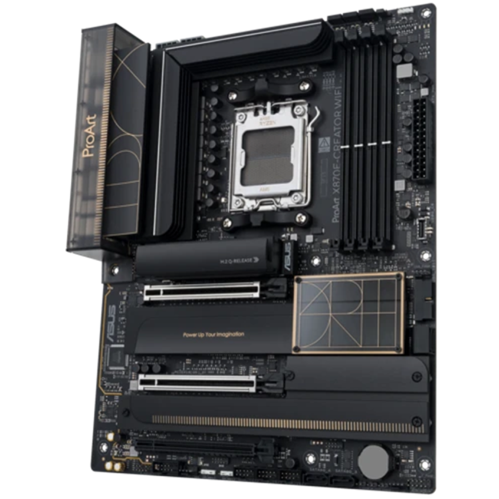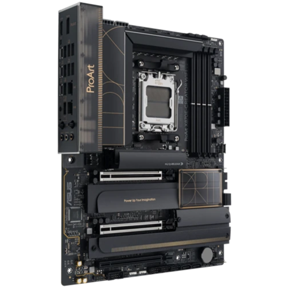 Материнская плата ASUS ProArt X870E-CREATOR WIFI ориентирована на создателей контента и творческих пользователей. Она рассчитана на установку процессора AMD Ryzen с сокетом AM5. Задействовать до 192 ГБ оперативной памяти позволяют 4 слота DIMM DDR5. При помощи 3 слотов PCI-E x16 можно подключить дискретный графический адаптер, звуковую карту и прочие устройства. Для создания вместительного хранилища предусмотрены 4 разъема M.2 и 4 SATA.