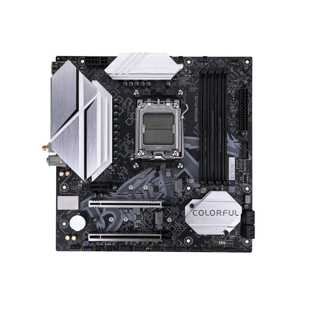 Материнская плата Colorful BATTLE-AX B650M-PLUS WIFI V15I — это современное решение формата micro-ATX на чипсете AMD B650 с сокетом AM5, предназначенное для сборки производительных систем с поддержкой процессоров Ryzen серий 7000/8000. Она оснащена мощной системой питания 10+2+1 с DrMOS 55 A и большим алюминиевым радиатором, поддерживает до 192 ГБ оперативной памяти DDR5 с разгоном до 7600 МГц, а также два высокоскоростных слота M.2 с интерфейсом PCIe 5.0. Присутствуют расширенные возможности подключения через порты USB 3.2 Gen2, встроенные модули Wi-Fi 6 и Bluetooth 5.2 от Intel, а также гигабитная сеть на контроллере Realtek 2.5G. Плата также предлагает поддержку RAID, управление через приложение iGame Center, обновление BIOS без процессора и стильное оформление. Подходит для игровых и рабочих систем с акцентом на скорость хранения и беспроводную свободу.