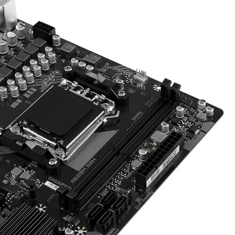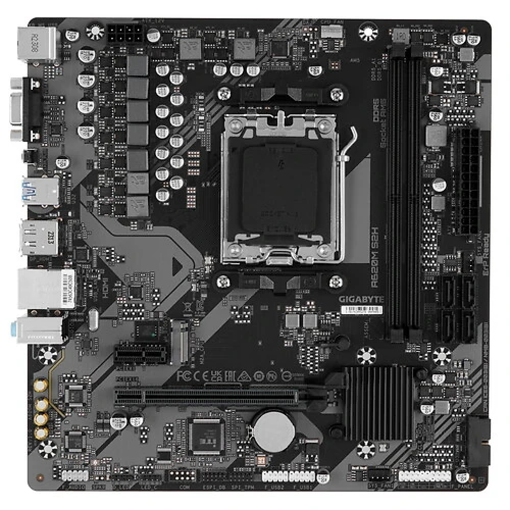 Материнская плата GIGABYTE A620M S2H 2.0 совместима с процессорами AMD Ryzen 7000. Благодаря размерам 230x225 мм в соответствии с форм-фактором Micro-ATX она подходит для компактного системного блока. В плате реализованы 2 разъема DIMM для модулей оперативной памяти DDR5 объемом не более 128 ГБ. Слоты расширения PCI-E x16 и PCI-E x1 предусматривают установку дискретной видеокарты. Подключение накопителей возможно с помощью 1 разъема M.2 и 4 SATA.