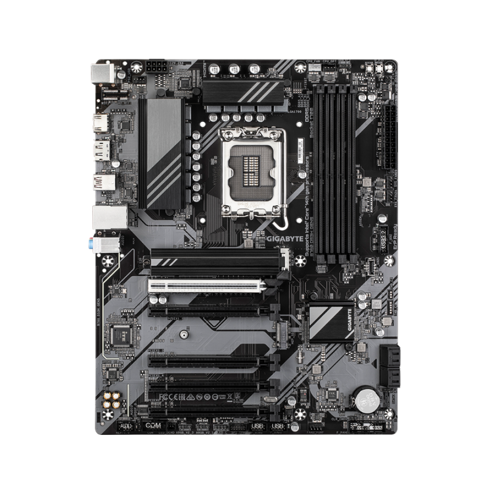 Материнская плата GIGABYTE B760 DS3H обладает свойствами производительной и надежной основы для универсального системного блока. Она выполнена в форм-факторе Standard-ATX и поддерживает работу с процессором Intel 12/13/14-го поколения. Для подключения графических адаптеров есть 5 слотов PCI-E x16. Комплектующая позволяет задействовать максимум 256 ГБ оперативной памяти с помощью 4 слотов DIMM DDR5. Под установку устройств хранения предусмотрены 2 разъема M.2 и 4 слота SATA.