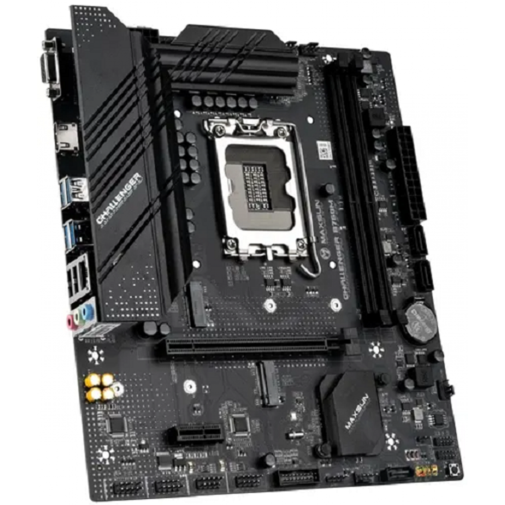 Материнская плата MaxSun Challenger B760M станет надежным решением для сборки офисной рабочей станции. Она выполнена в форм-факторе Micro-ATX и содержит в своей основе чипсет Intel H760 с процессорным разъемом LGA 1700. В оснащение платы входят 2 слота под размещение до 64 ГБ оперативной памяти, 3 разъема SATAIII и 2 разъема M.2 под установку накопителей, по одному слоту расширения PCI-E x16 и PCI-E x1 для графических адаптеров.