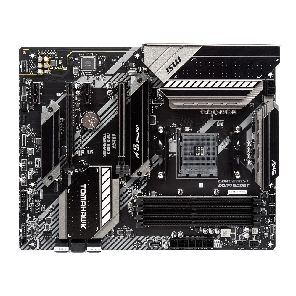 Материнская плата MSI MAG B550 TOMAHAWK отличается широкими возможностями для создания производительной системы под любые задачи. Платформа соответствует формату Standard-ATX, что открывает широкие возможности для конфигурации компьютера. Благодаря первоклассным компонентам модель отличается высокой надежностью, а стильный дизайн корпуса, сочетающий в себе необычные формы и RGB-подсветку, станет отличным визуальным дополнением вашей сборки.