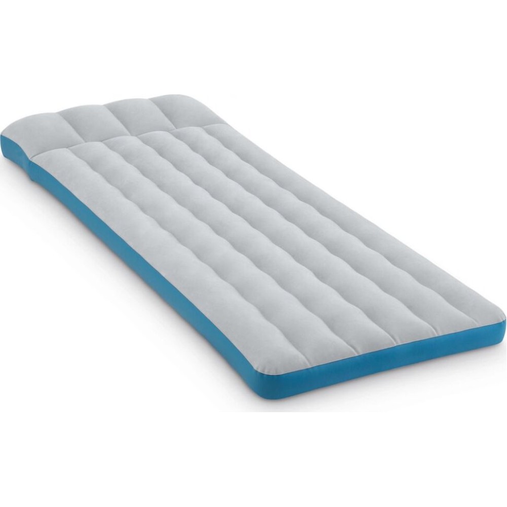 КорзинаНадувной матрас Intex Camping Mat 67998 - изготовлен из прочного водонепроницаемого винила, сверху покрыт флокированным слоем, напоминающим велюр, который не позволяет постельному белью соскальзывать. Классический надувной матрас с продольными перегородками зарекомендовал себя как надежная и недорогая модель.