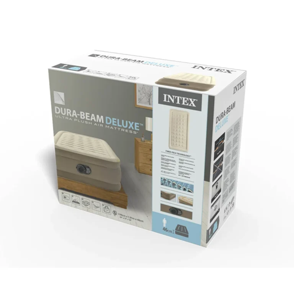 Надувная кровать Intex 64426ND Ultra-Plush — это одна из самых комфортных односпальных моделей в линейке Intex. Её главная особенность — уникальная двухслойная верхняя поверхность, которая создает ощущение сна на настоящем домашнем матрасе.