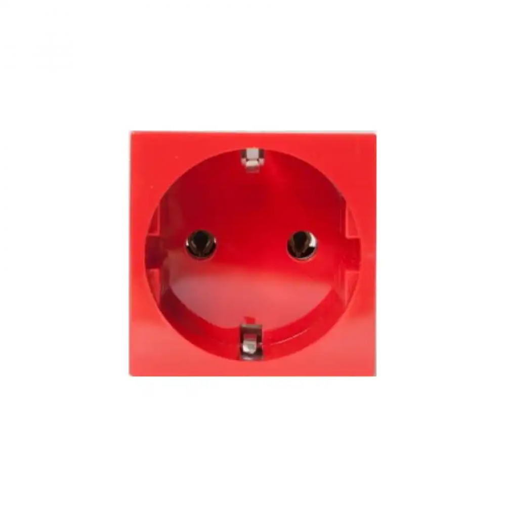 Розетка электрическая 2К+З с защитными шторками, красного цвета. Обеспечивает безопасное подключение электроприборов, защитные шторки предотвращают попадание посторонних предметов внутрь розетки, что повышает безопасность использования. Идеально подходит для установки в жилых и коммерческих помещениях
