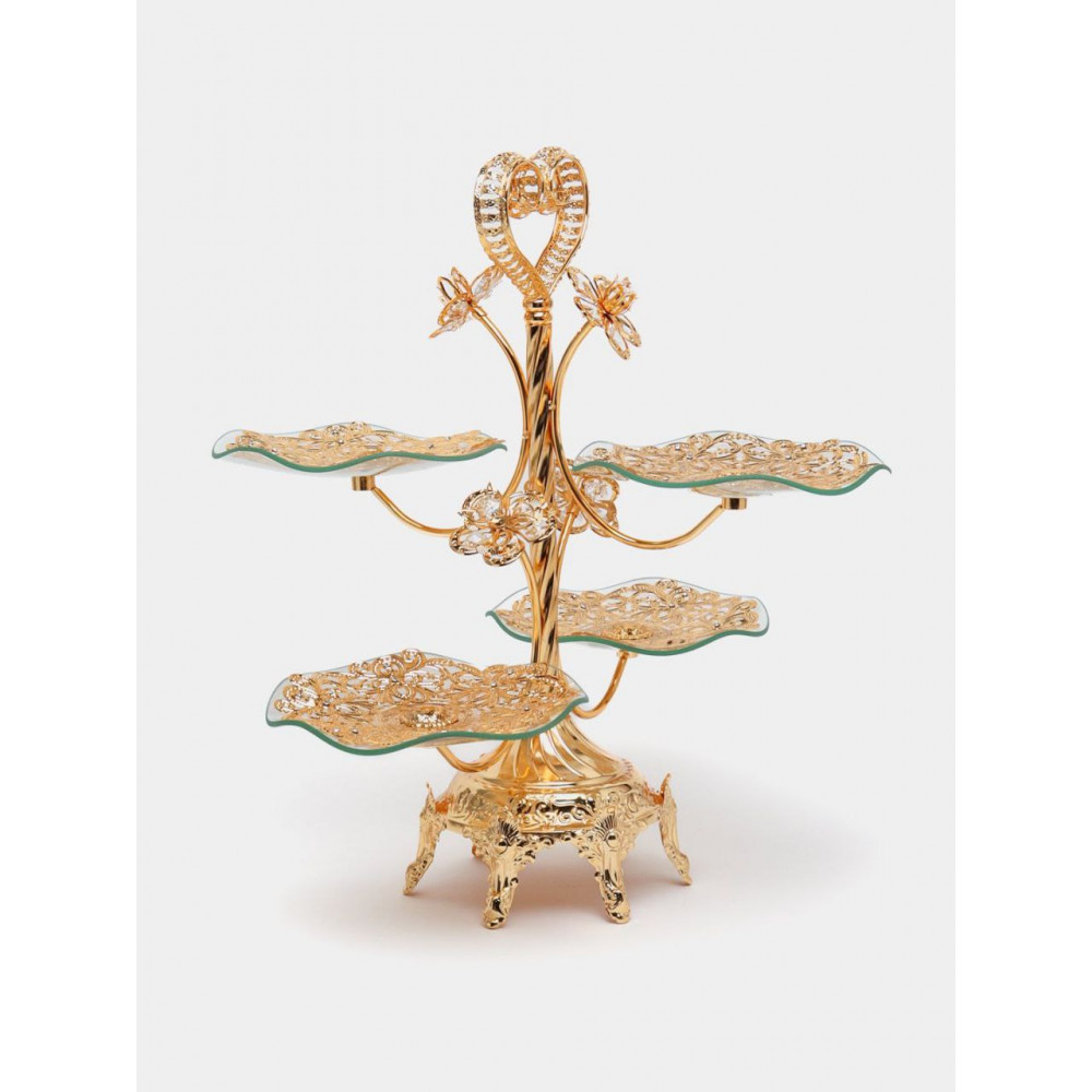 Менажница HADIIY — элегантная трёхъярусная этажерка/менажница в золотистом цвете, изготовленная из алюминия с элементами стекла. Идеально подходит для презентабельной подачи фруктов, десертов или сладостей. Надёжная конструкция с удобной ручкой для переноски, легко моется (стеклянные части в посудомойке, ножка — вручную). Отличный выбор как для домашнего использования, так и для общественных мероприятий.
