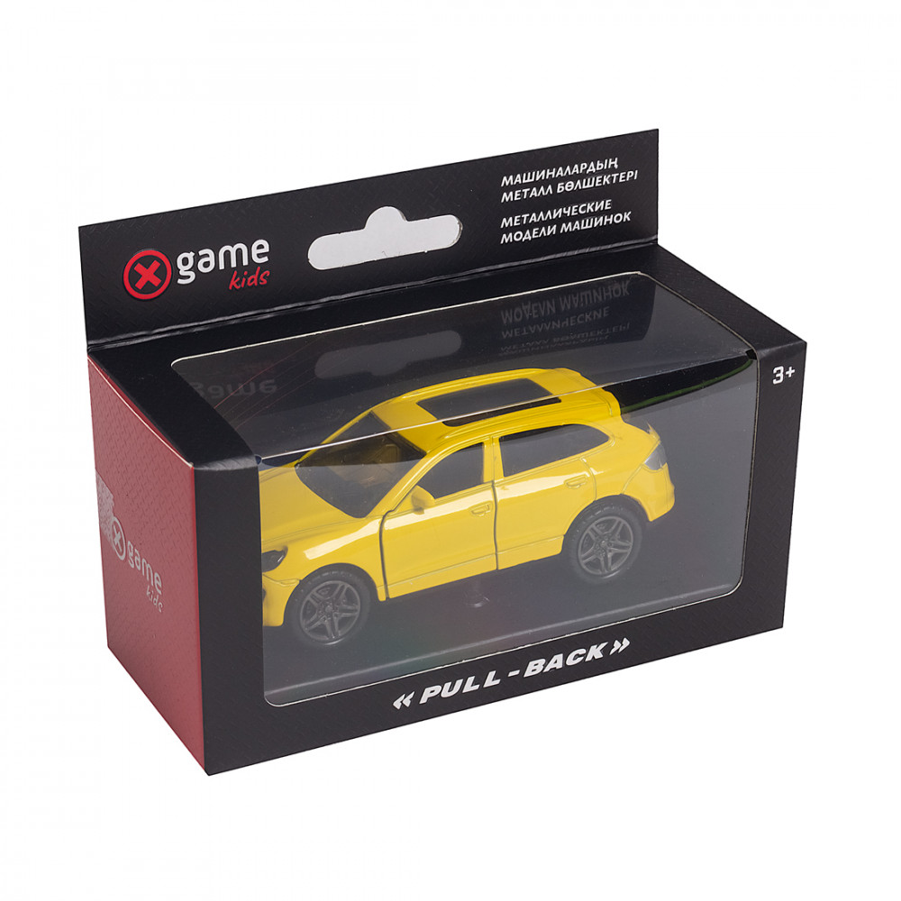 Металлическая машинка, X-Game Kids, 64480Y, 1:32, Длина 12.1 см, Открывающиеся двери и багажник, Pull-back двигатель, Жёлтая, Цветная коробка