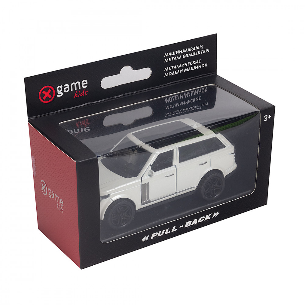 Металлическая машинка, X-Game Kids, 68510W, 1:32, Длина 12.2 см, Открывающиеся двери и багажник, Pull-back двигатель, Белая, Цветная коробка