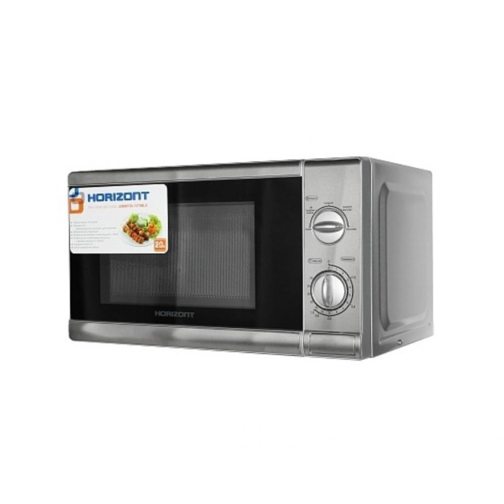 Микроволновая печь Horizont 20MW700-1378BLS серебристого цвета — отдельно стоящая модель с внутренним объемом 20 л. Оснащена навесной дверцей с открытием кнопкой и внутренним покрытием из эмали. Размеры устройства составляют 45,5×26×33,5 см (Ш×В×Г), диаметр поддона — 245 мм. Управление механическое, поворотное, без дисплея. Мощность микроволн — 700 Вт, пять уровней мощности, таймер до 35 минут. Поддерживается режим разморозки, имеется звуковой сигнал и подсветка камеры. Гриль, нижний гриль и конвекция отсутствуют, инверторное управление мощностью не предусмотрено.