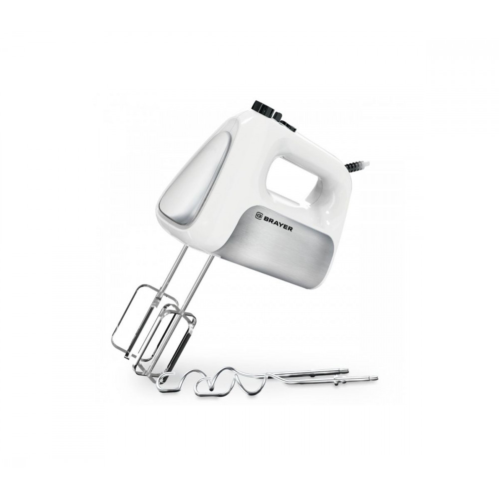 В комплекте — 2 венчика и 2 крюка для замешивания теста. Корпус из прочного пластика и металла обеспечивает долговечность и стильный внешний вид.