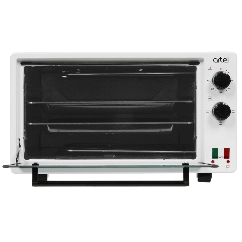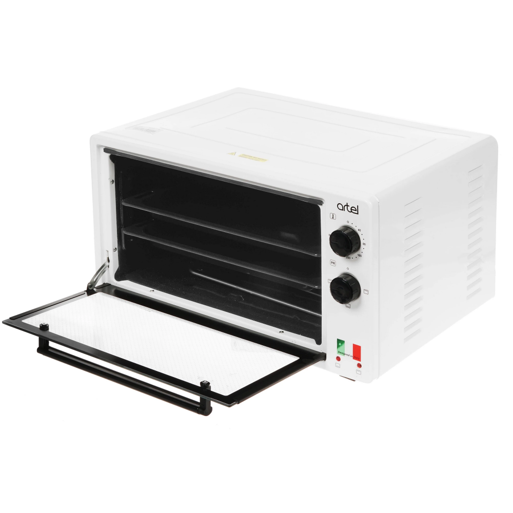 Электропечь Artel MD 3216 Е представлена в настольном белом корпусе с объемом духового шкафа 32 л. Устройство действует с мощностью 1400 Вт при наличии трех рабочих режимов. Нагрев камеры осуществляется в диапазоне 40-300°C.