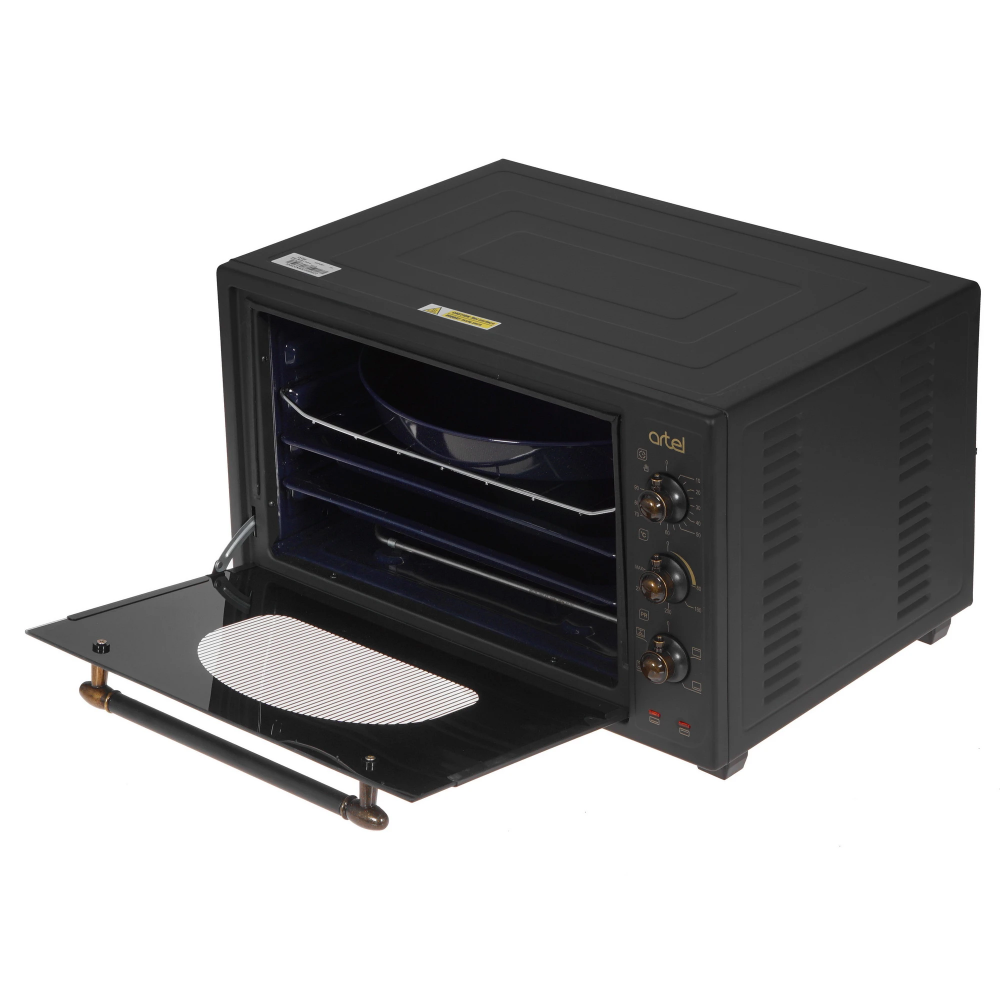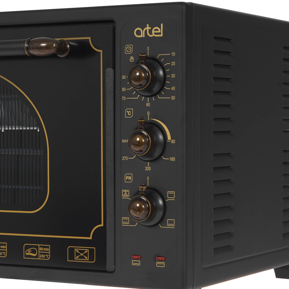 Два режима работы дополнены режимом конвекции для равномерного перемешивания внутри горячего воздуха. Казалось бы, что еще можно требовать от этой компактной помощницы? А еще она изнутри оснащена прочным покрытием из стали, поэтому высокие температуры не нанесут ей ни малейшего вреда. Ретро-дизайн электропечи ARTEL MD 3618 L достоин отдельного упоминания. Термоизолированный корпус дополнен такой же ручкой и установлен на ножки, чтобы поверхность под ним не перегревалась.