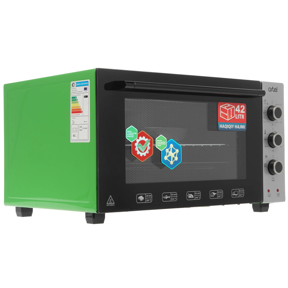 Электропечь ARTEL MD 4218 E предназначена для приготовления вкусных и полезных блюд. Два тэна обеспечивают равномерное распределение тепла внутри камеры. Объем рабочего пространства составляет 42 л, чего достаточно для приготовления большого количества порций. Металлический корпус устойчив к воздействию внешних факторов, а зеленая поверхность надолго сохраняет первоначальный вид.