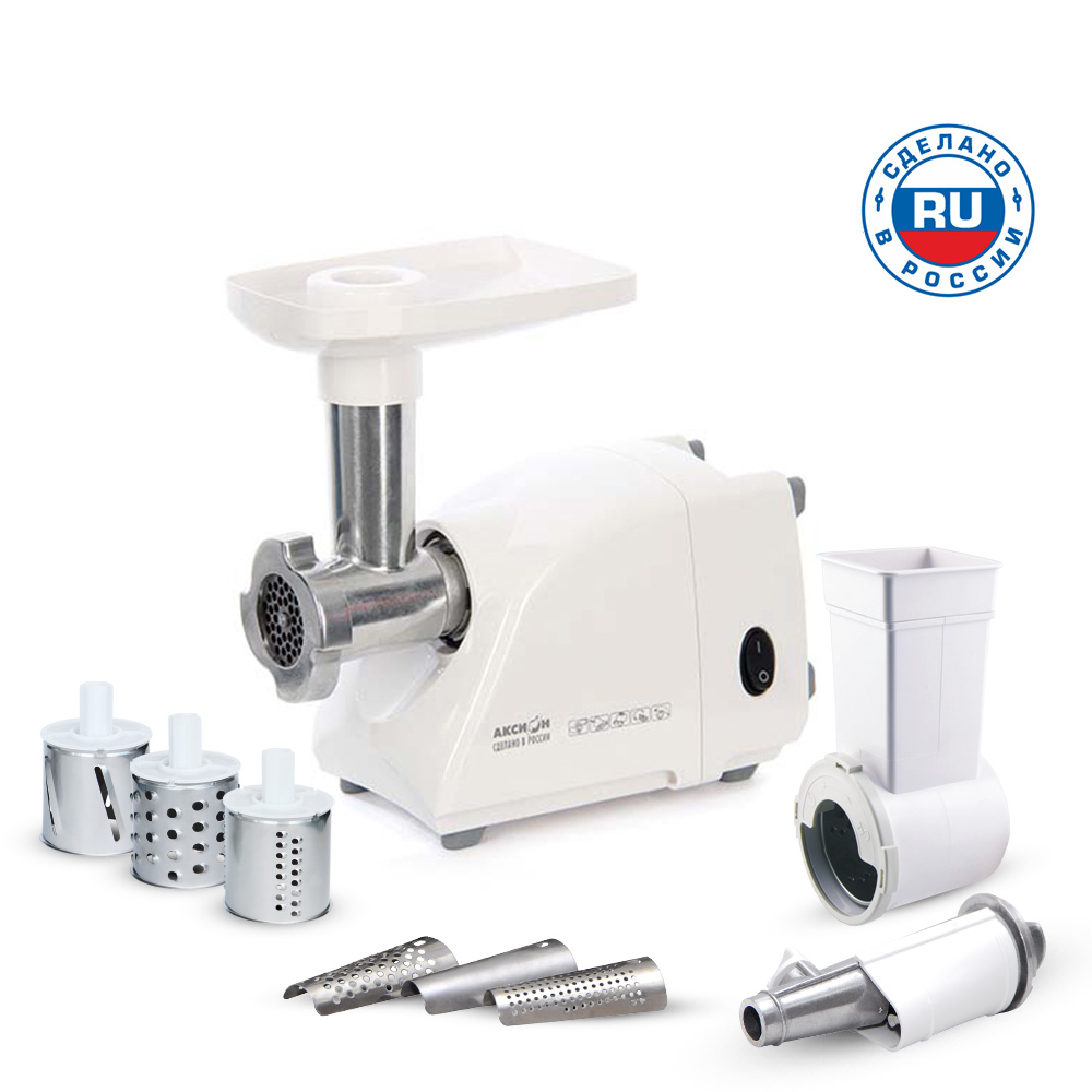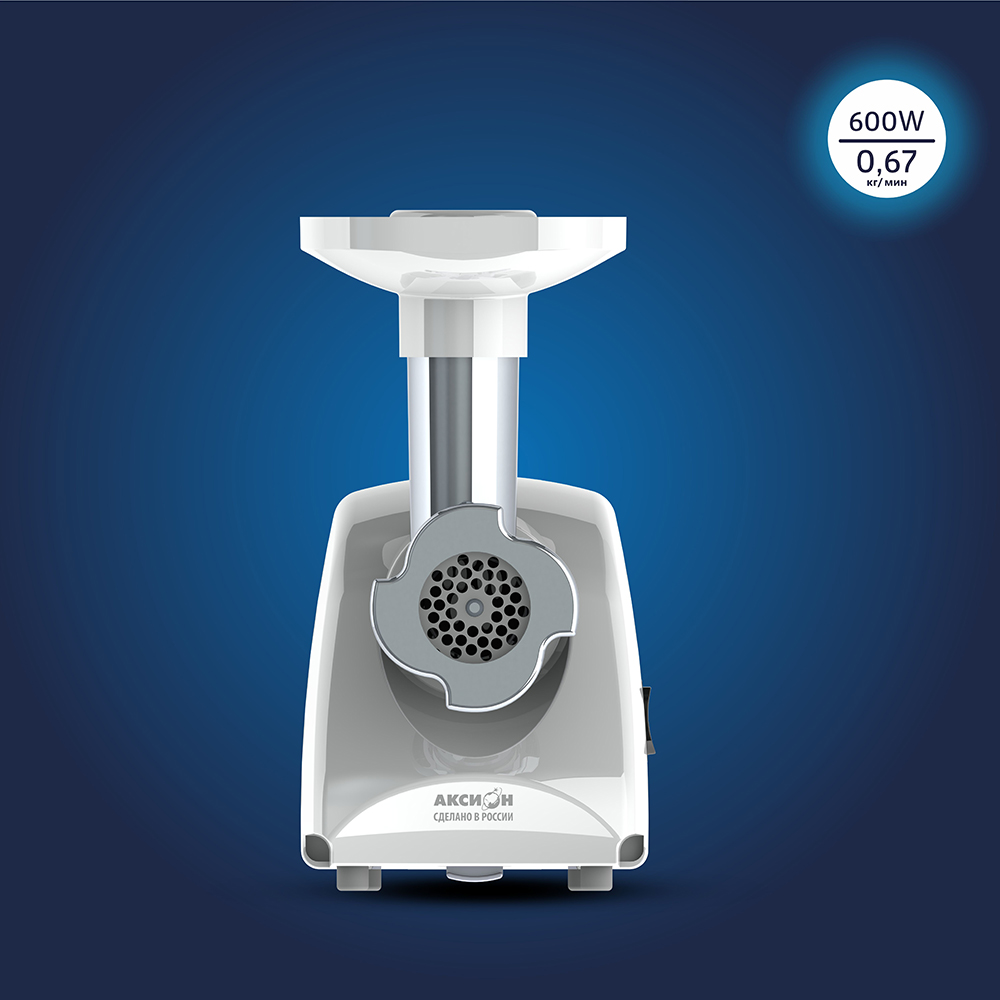 Аксион М14.02 — компактная электромясорубка для дома с 4 насадками, включая решётки для фарша, овощерезку и насадку для колбас. Мощность 600 Вт, производительность 0.67 кг/мин, защита от перегрева и простое управление делают её удобной для ежедневного использования.
