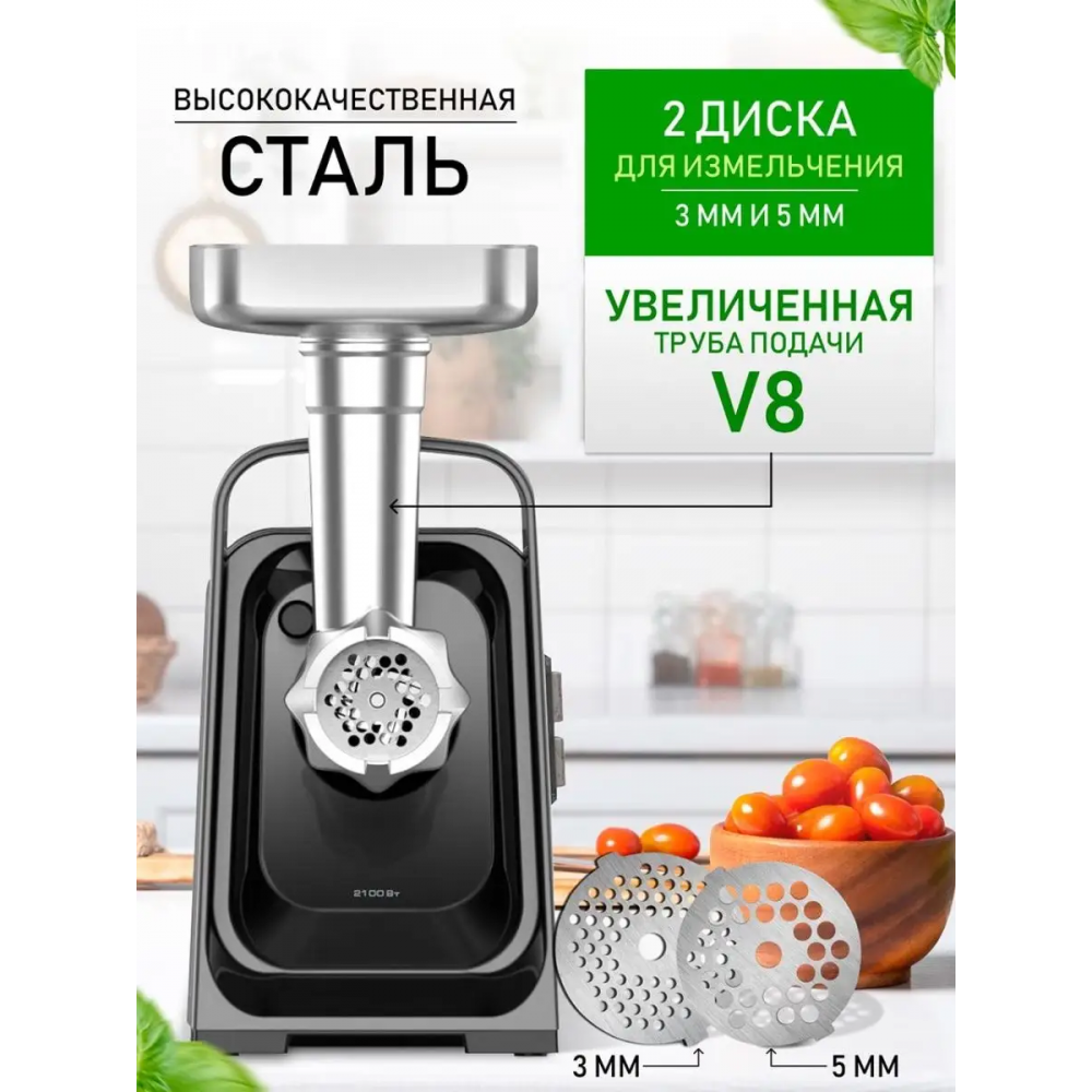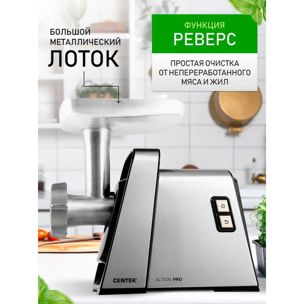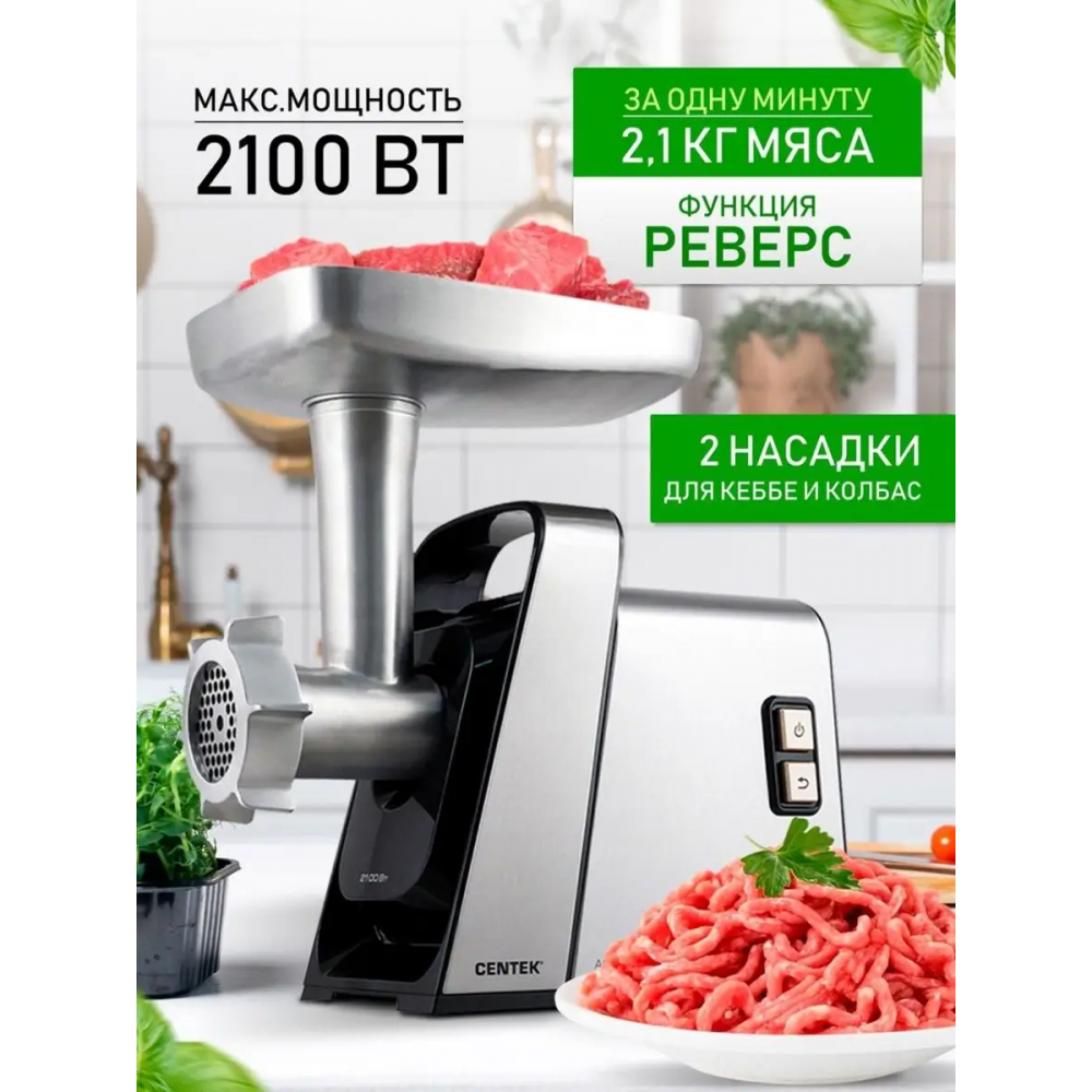 Centek CT-1618 — мощная электромясорубка с производительностью до 2.5 кг/мин и максимальной мощностью 3000 Вт. В комплекте 3 насадки: решётки для фарша и насадка для колбас. Металлический лоток, реверс, защита от перегрева — всё для удобного домашнего использования.Centek CT-1618 — мощная электромясорубка с производительностью до 2.5 кг/мин и максимальной мощностью 3000 Вт. В комплекте 3 насадки: решётки для фарша и насадка для колбас. Металлический лоток, реверс, защита от перегрева — всё для удобного домашнего использования.