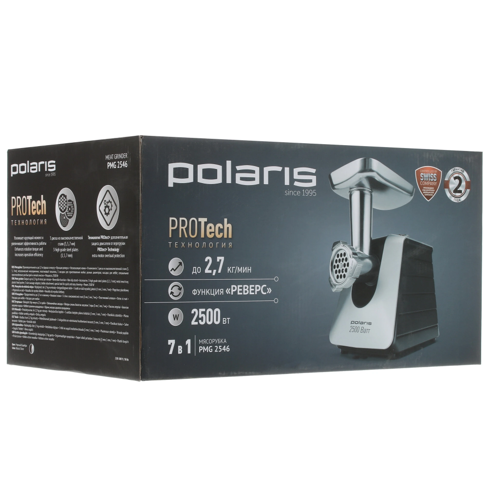 Polaris PMG-2546 — это мясорубка, созданная для тех, кто ценит скорость, надёжность и функциональность. С лёгкостью справляется с мясом, рыбой, овощами и даже приготовлением домашних колбас и кеббе. Благодаря высокой мощности и продуманной комплектации, она подходит как для повседневного использования, так и для праздничных заготовок.