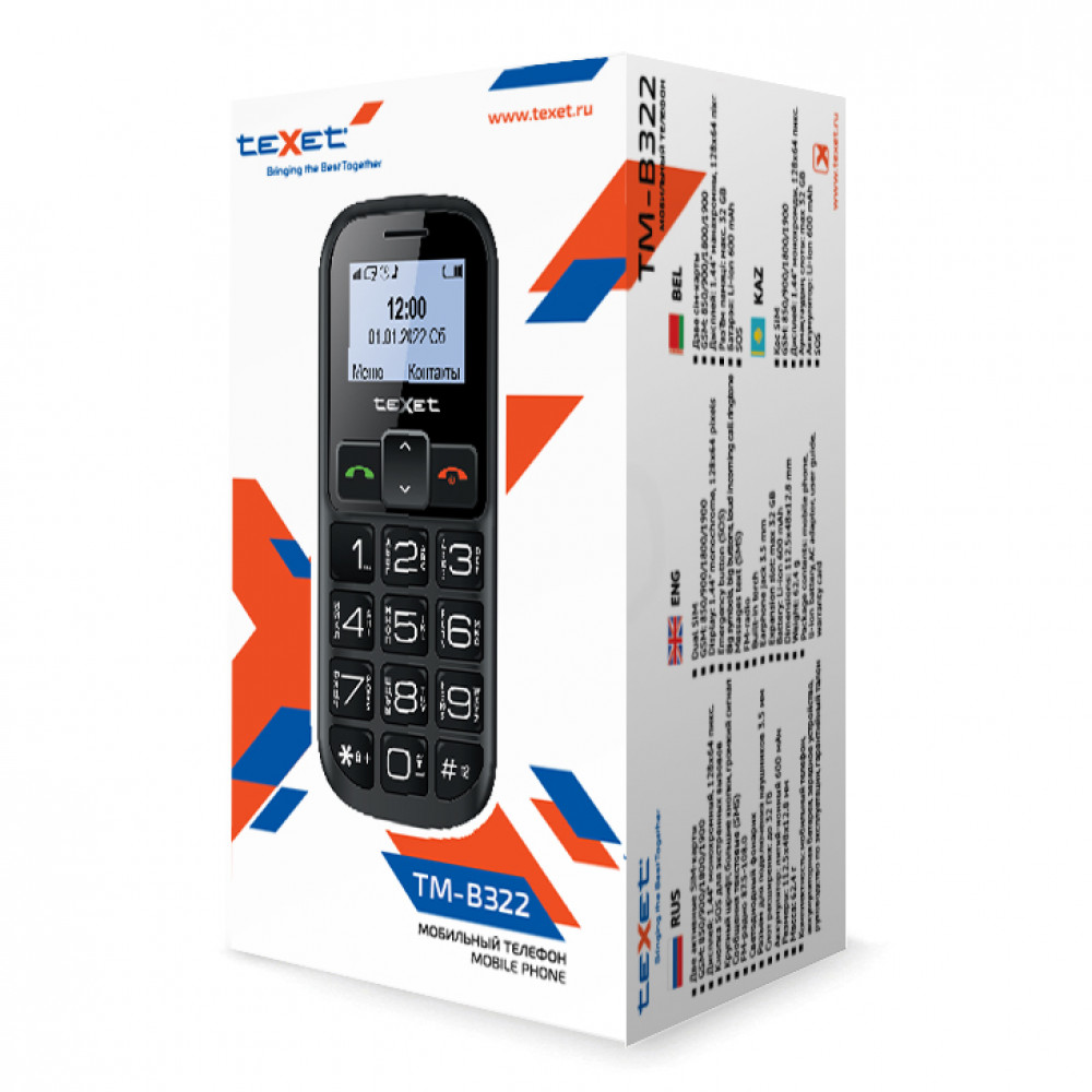 Телефон teXet TM-B322 позволяет использовать две SIM-карты одновременно. Вы можете использовать SIM-карты с различными номерами от различных поставщиков услуг мобильной связи. TeXet TM-B322 — это мобильный телефон (абонентская радиостанция), предназначенный для работы в качестве оконечного абонентского устройства в сотовых сетях стандарта GSM 850/900/1800/1900.
