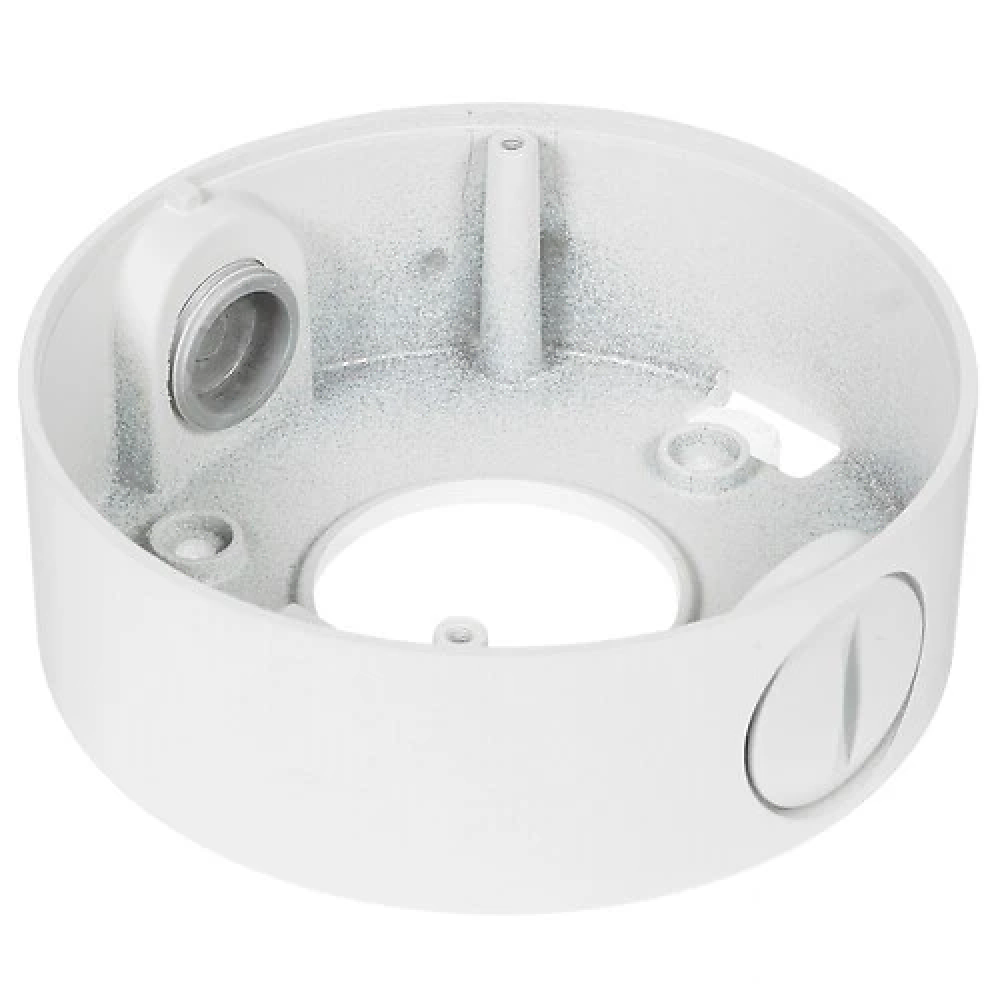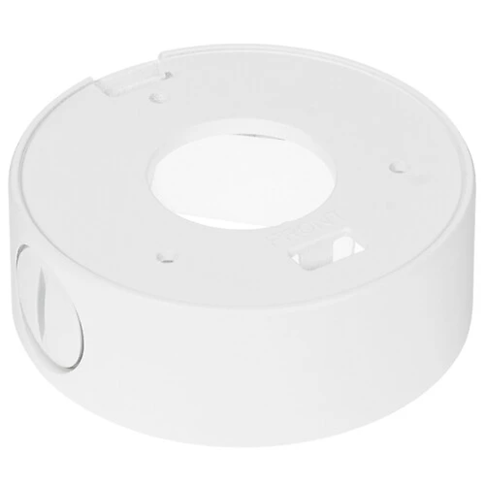 Монтажная коробка Trassir TR-JB301 подходит для разных моделей IP-видеокамер с округлым корпусом. Устройство представлено в нейтральной белой расцветке, благодаря чему незаметно выглядит на фоне потолка или окрашенной стены. Поставка осуществляется вместе с набором крепежей.