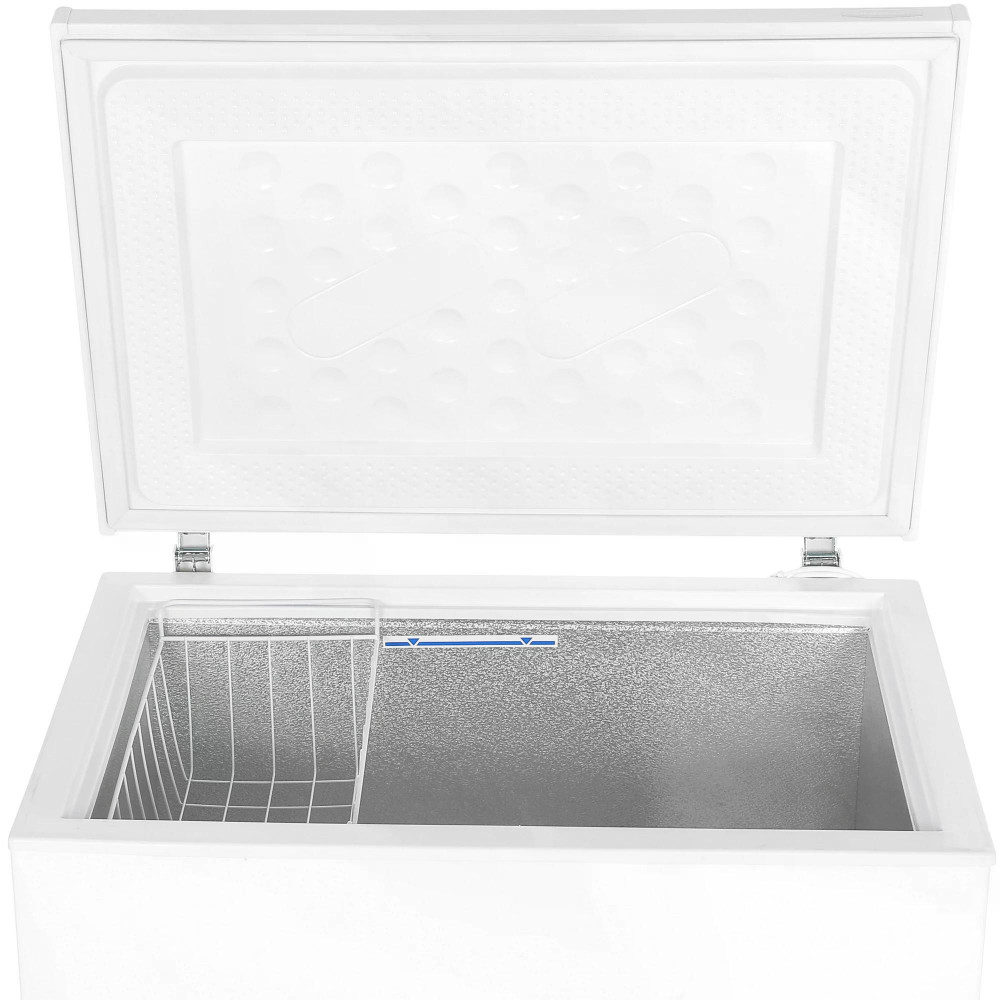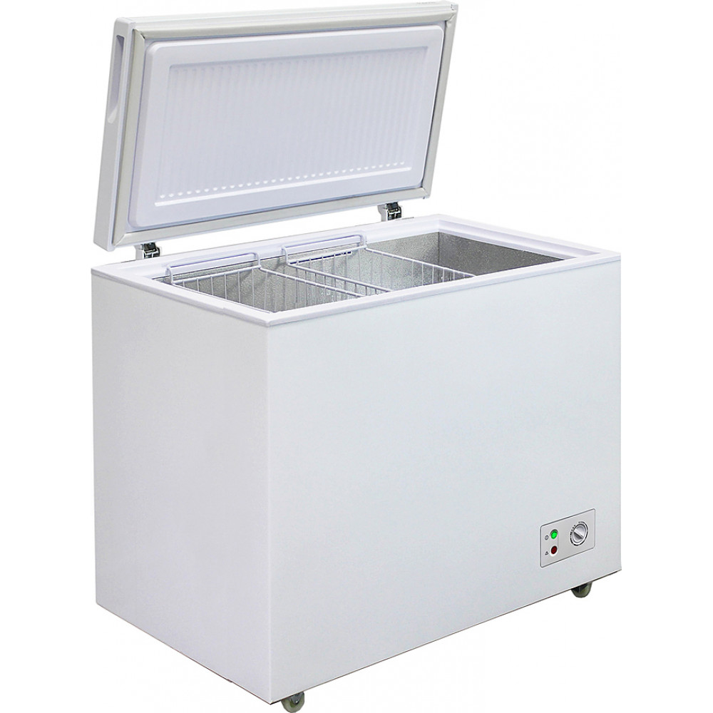 Вместительность камеры ларя Бирюса 305KX составляет 285 л. Для более удобного размещения продуктов небольшого размера используются две подвесные корзины, которые позволяют также экономить пространство и обеспечивают более легкий поиск продуктов. Внутри ларя сохраняется максимальная температура -18 градусов, что создает оптимальные условия для сохранения полезных свойств ягод, фруктов и овощей. На корпусе рядом с поворотным регулятором режимов работы ларя расположены индикаторы включения и неисправности, что позволяет следить за состоянием морозильного оборудования.