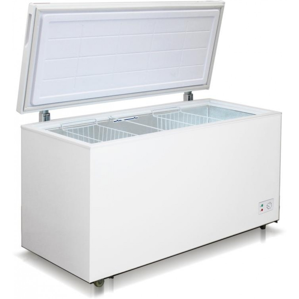 В камере сохраняется минимальная температура -18 градусов. Для регулировки этого показателя на внешнюю часть камеры Бирюса 455KX вынесен механический переключатель. Мощность замораживания устройства составляет 23 кг/сутки. Дополнительно в камере используются две подвесные корзины: в них можно хранить продукты, которые чаще всего используются. Для более легкого перемещения ларя используются ножки-колеса.