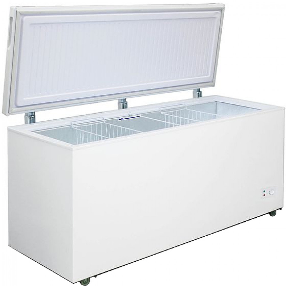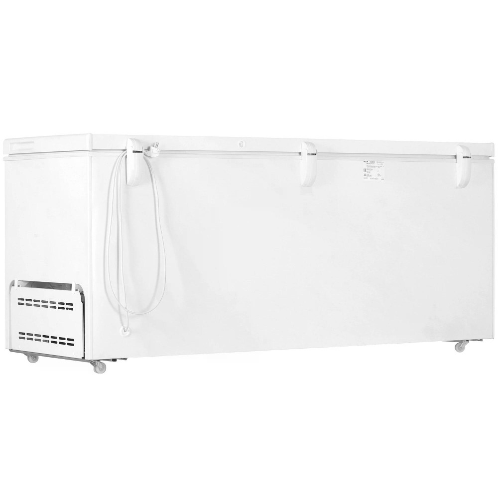 Сливное отверстие упрощает размораживание оборудования. Благодаря наличию колес на основании предусмотрена возможность перемещения морозильного ларя Бирюса 560KX. Класс энергоэффективности A отмечает невысокие расходы электрической энергии.
