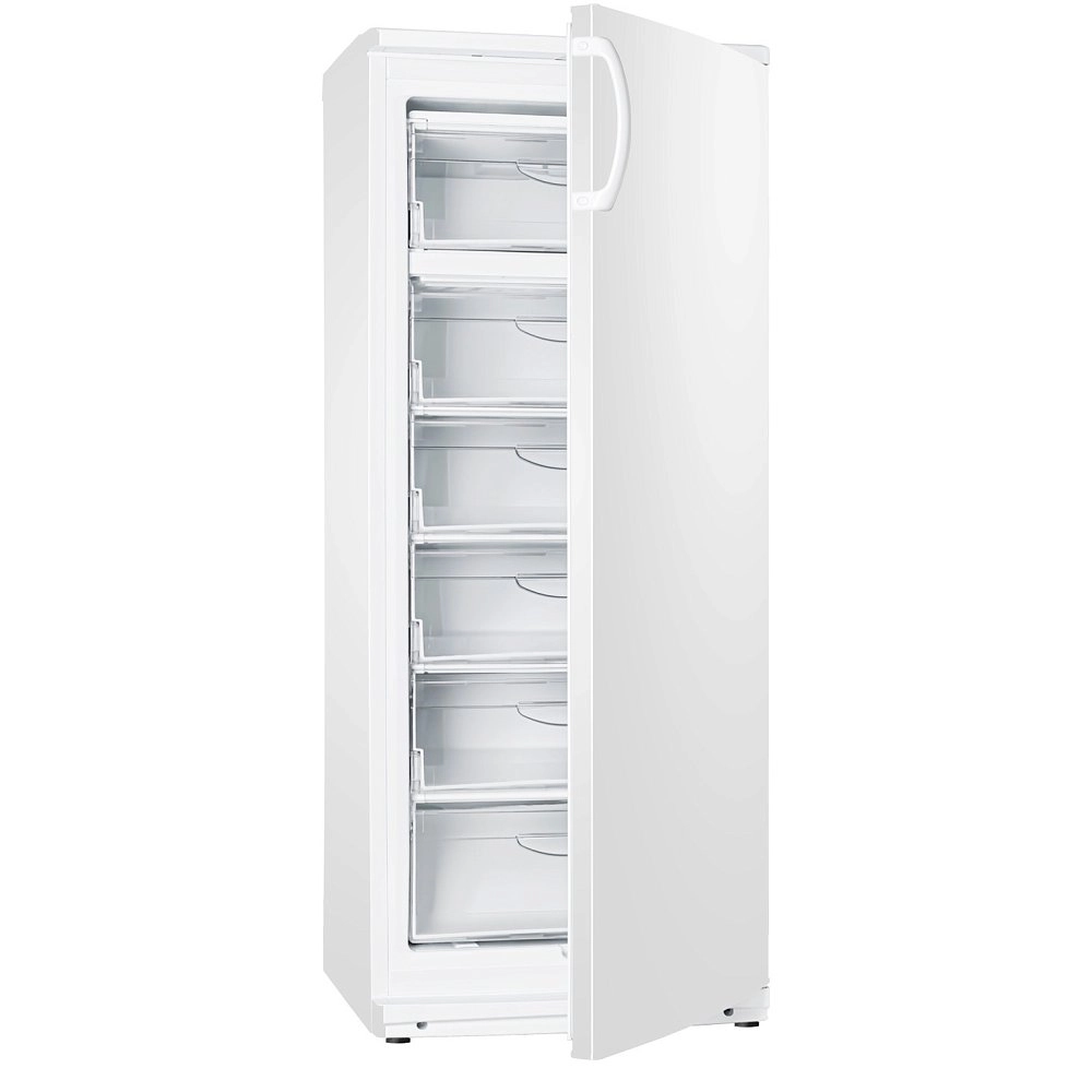 Для хранения замороженных продуктов очень удобно использовать среднегабаритные вертикальные морозильные шкафы. Хорошим вариантом в невысокой ценовой категории является М 7184 003 от бренда Атлант. Имеет оптимальные характеристики для обычного использования.