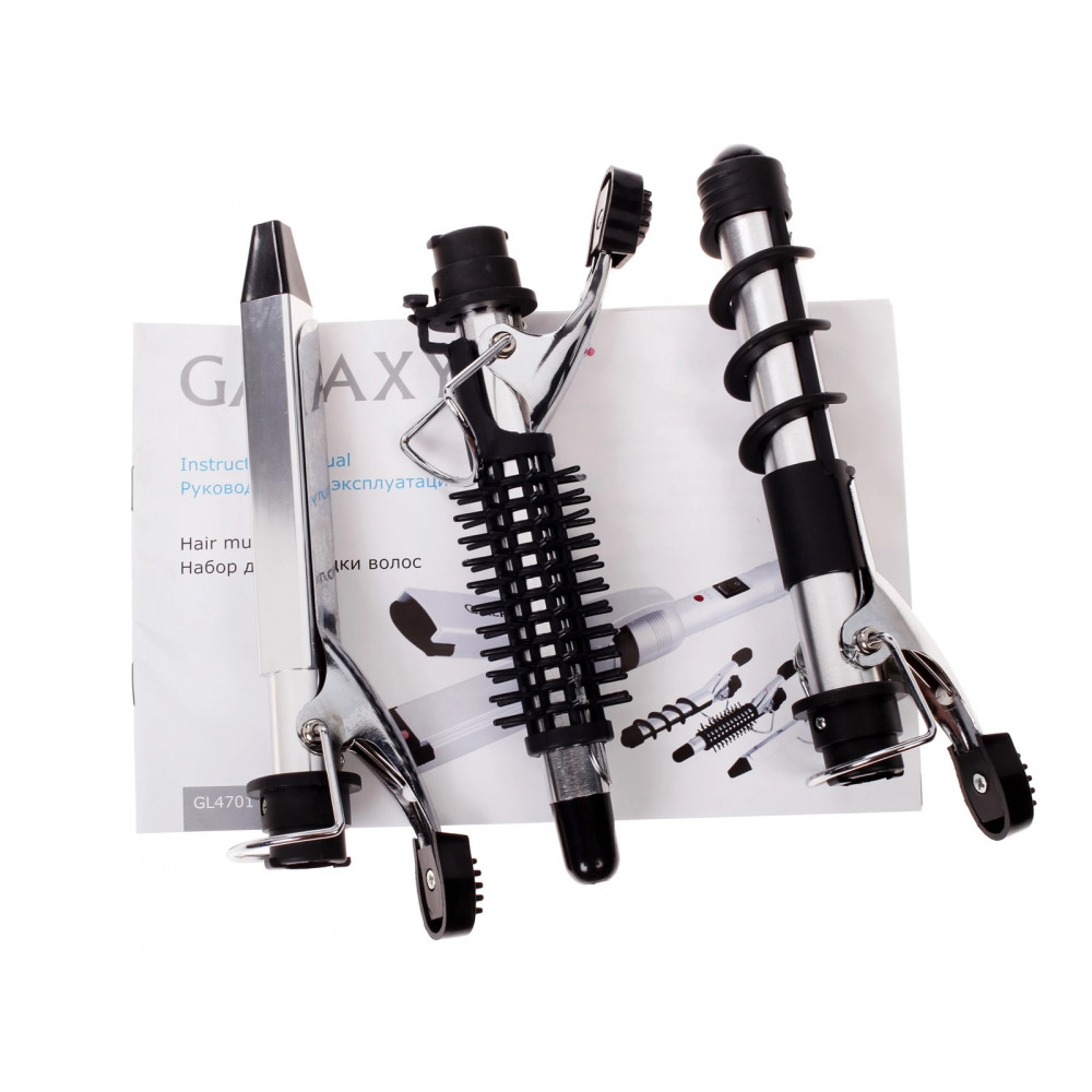 Мультистайлер Galaxy GL 4701 позволит Вам создать великолепные прически и уложить даже самые непослушные волосы. Galaxy GL 4701 сочетает в себе большое количество необходимых для укладок функций и приспособлений. В комплект входят: насадка-щипцы для завивки, круглая насадка-щетка, насадка для спиральной укладки.