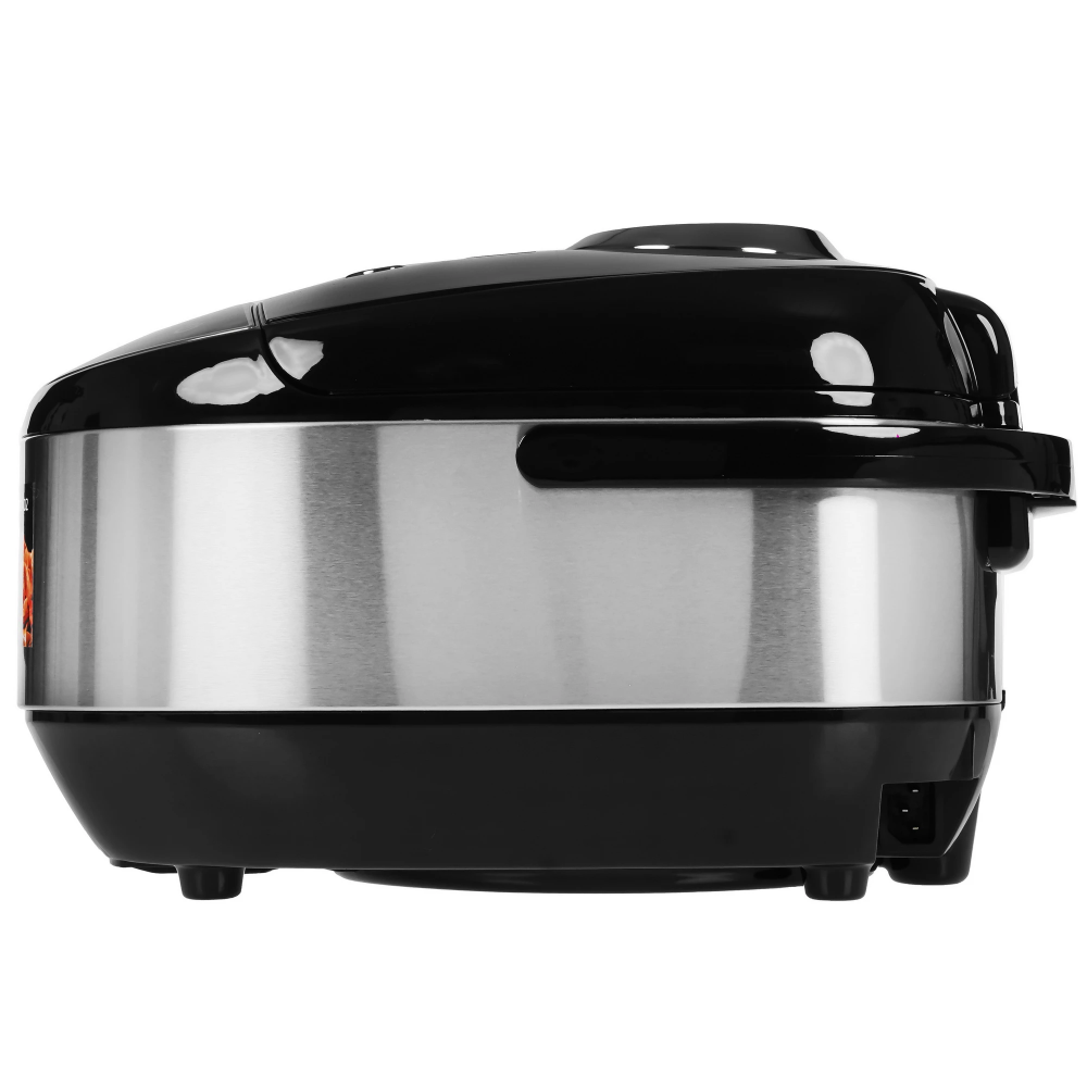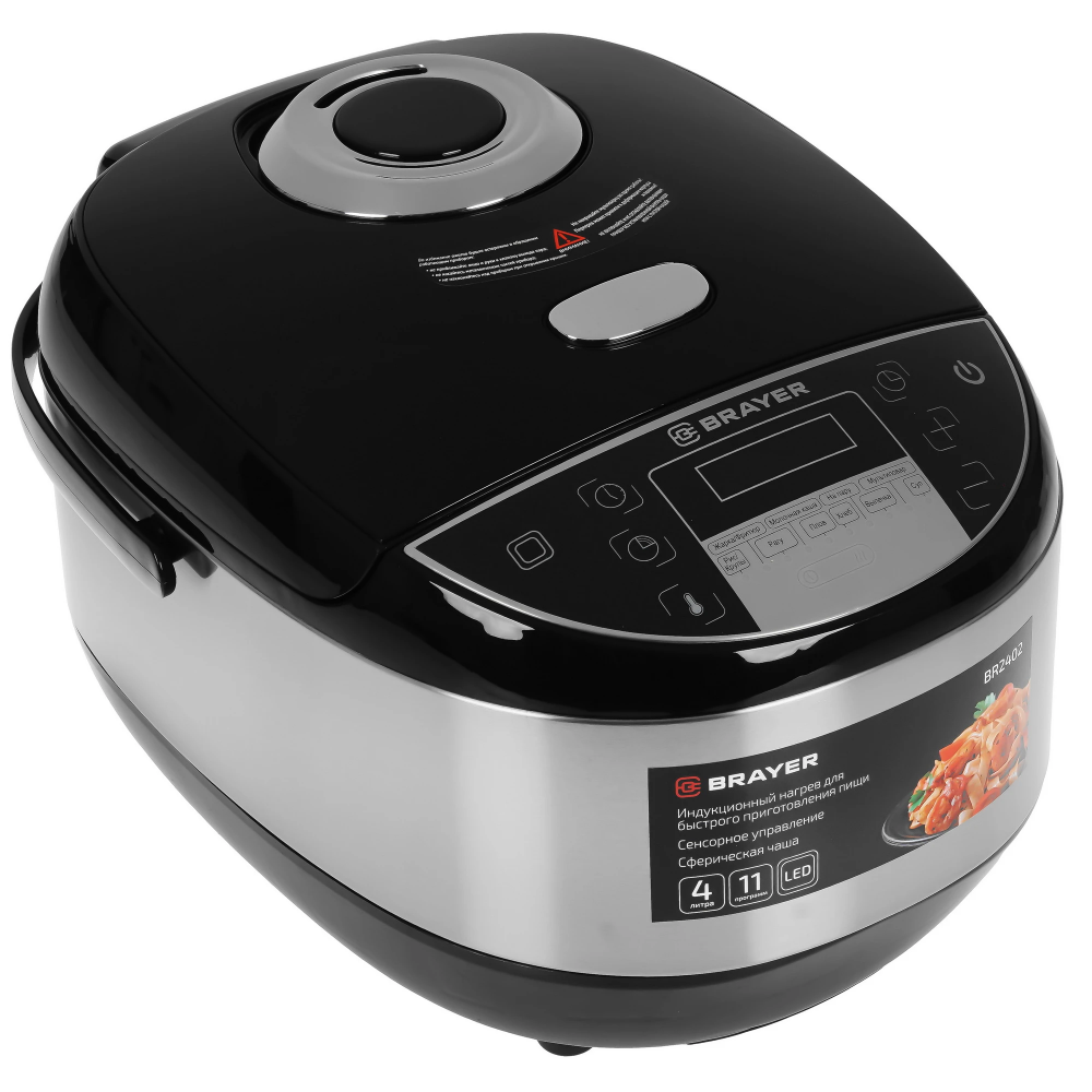 Мультиварка Brayer BR2402 в черном металлическом корпусе оснащена легкой и прочной алюминиевой чашей на 4 л с антипригарным покрытием DAIKIN. Сенсорные кнопки управления поддерживают блокировку для защиты от детей. Дисплей с индикаторами отображает выбранные программы и показывает обратный отсчет времени готовки. Вы можете настраивать таймер отсрочки до 24 ч и отключать звуковые сигналы.