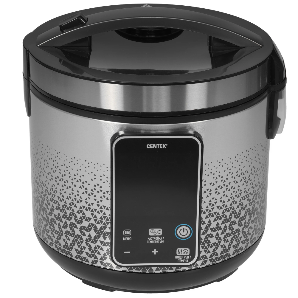 Мультиварка Centek CT-1499 мощностью 900 Вт заключена в корпус из металла и пластика серебристого цвета. Конструкцией предусмотрена чаша объемом 5 л. Доступ к 25 автоматическим программам открывается с помощью сенсорной панели управления.