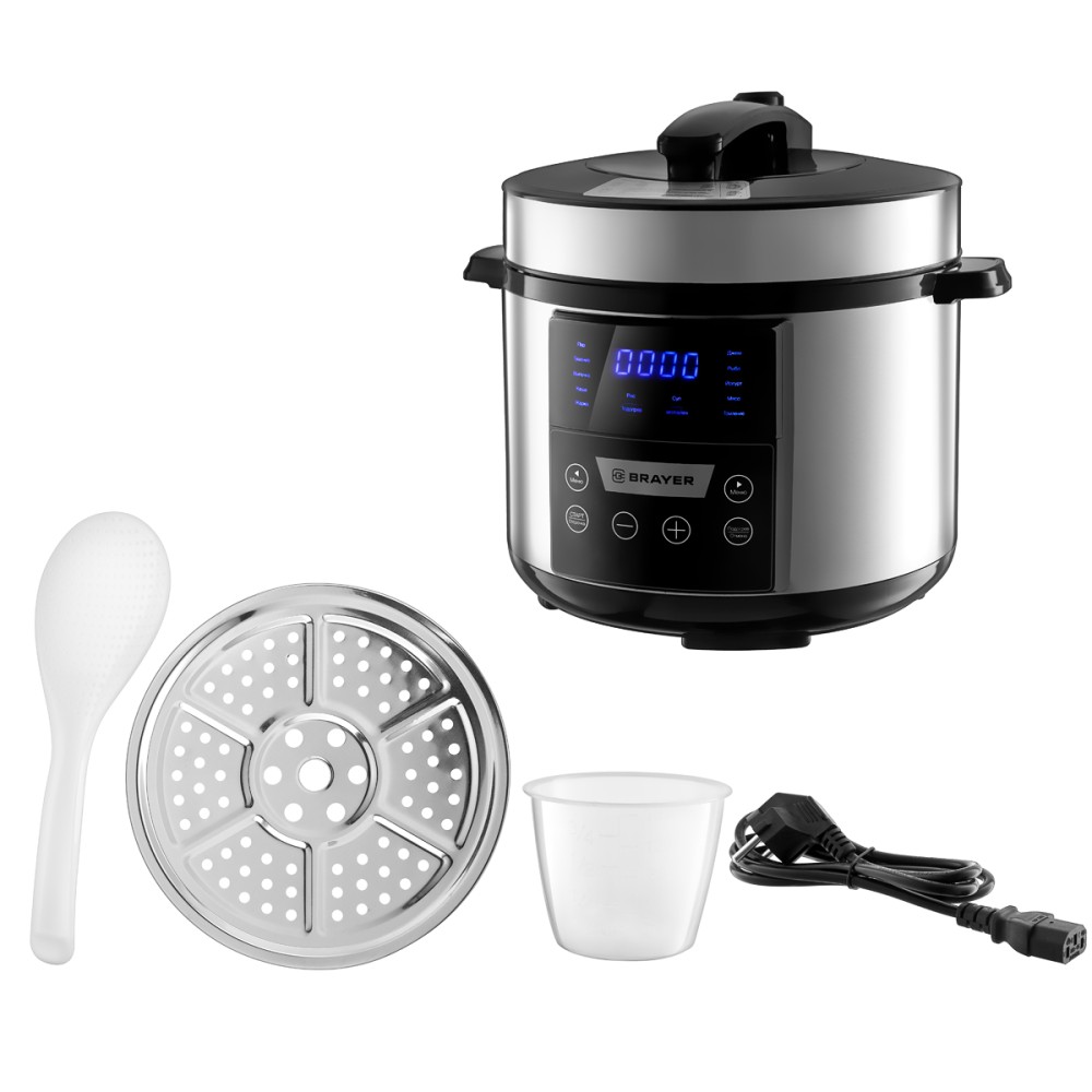 Brayer BR2400 оборудована чашей объемом 5 литров с антипригарным покрытием. Помимо этого, в комплекте поставляются корзина приготовления блюд на пару, стакан с мерной шкалой, половник. Чаша и дополнительные принадлежности предусматривают мытье в посудомоечной машине.