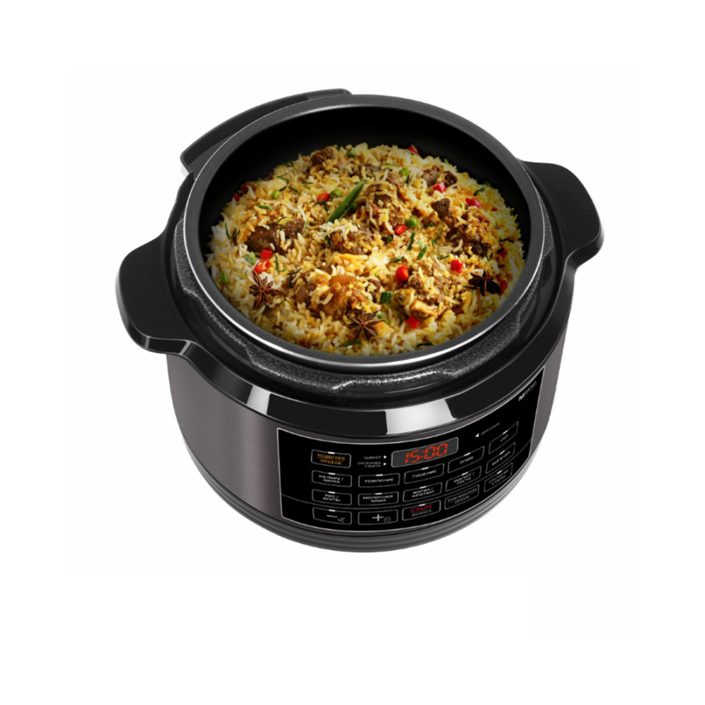 Алюминиевая чаша обладает емкостью 5 л и антипригарным покрытием. С помощью таймера отложенного запуска можно запрограммировать определенное время начала приготовления. Для сохранения блюда горячим предусмотрена функция поддержания температуры. В комплекте с Redmond RMC-PM388 поставляются мерный стакан, плоская лопатка, половник, емкость приготовления на пару и книга рецептов.