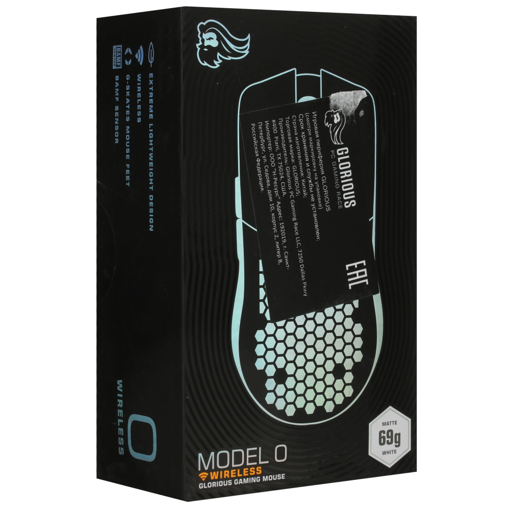 Мышь Glorious Model O использует в своей основе оптический светодиодный сенсор Glorious BAMF, главной особенностью которого является высокая чувствительность – вплоть до 19000 точек на дюйм. Благодаря этому, а также весу всего 69 грамм данная модель обеспечит легкое и точное позиционирование курсора на экране и станет отличным выбором для мониторов с высоким разрешением. Подключение к устройствам осуществляется при помощи ресивера с коннектором USB-A. В качестве источника питания используется аккумулятор, рассчитанный на 71 час работы. Для зарядки используется комплектный кабель USB.