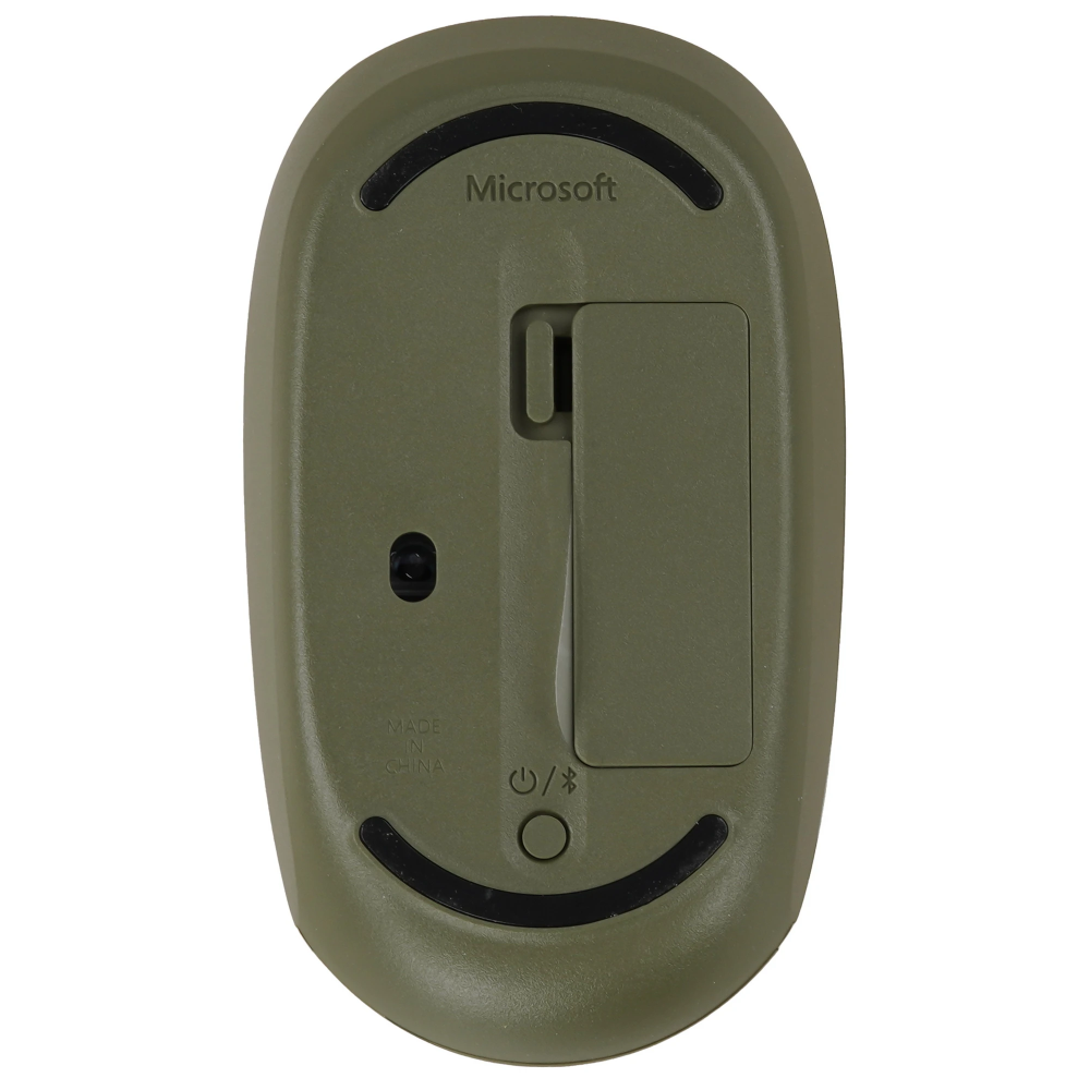 Мышь беспроводная Microsoft Bluetooth Mouse представляет собой стильную дорожную модель из особой камуфляжной серии, дизайн которой адаптирован под эксклюзивную тему для рабочего стола Windows. Компактный манипулятор оснащен 3 кнопками и работает от единственной батарейки типа АА. Беспроводное подключение осуществляется посредством связи Bluetooth версии 5.0 LE. Сопряжение с компьютером на OS Windows 11/10 (с последними обновлениями) происходит сразу после включения функции быстрой связи.
