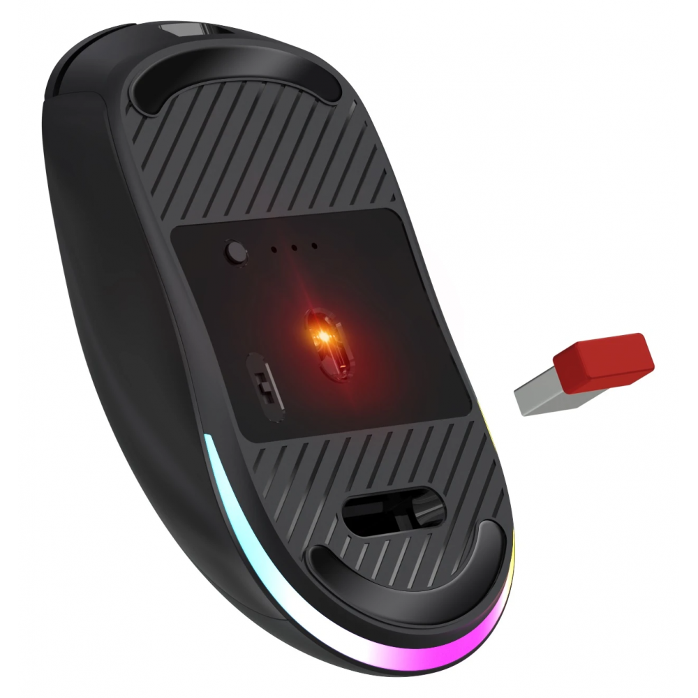 Эргономичная игровая мышь Defender Stone GM-551 с тремя режимами подключения: проводное, беспроводное по радиоканалу 2.4 Ггц, беспроводное подключение по Bluetooth. Данная модель поддерживает постоянное хранение в памяти двух устройств для подключения по Bluetooth. Также мышь имеет 6 режимов RGB подсветки, встроенный аккумулятор на 400 мАч и тефлоновые ножки для легкого скольжения по поверхности стола.