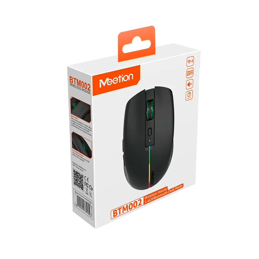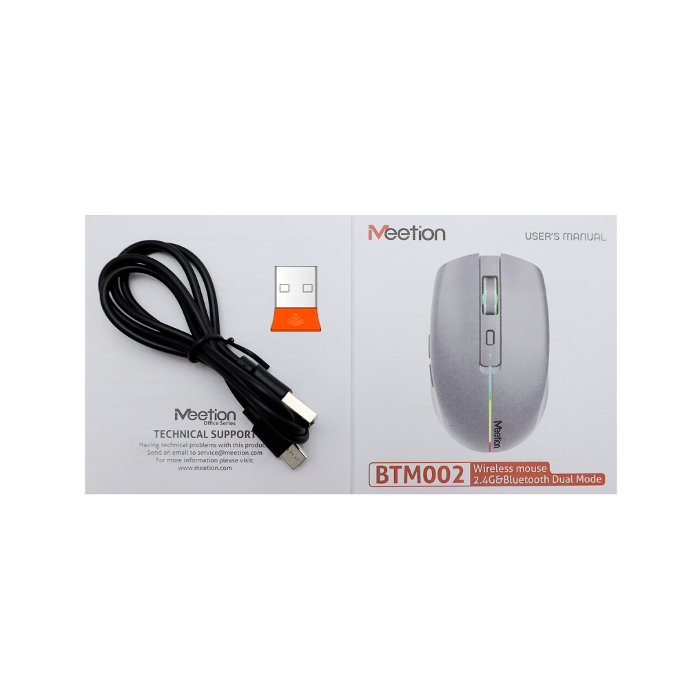 Meetion BTM002 - это компактная беспроводная мышь с двойным режимом подключения (2,4 ГГц и Bluetooth), предназначенная для офисной работы и повседневного использования. Она отличается бесшумными кнопками, встроенным аккумулятором и легким весом в 75 гр.